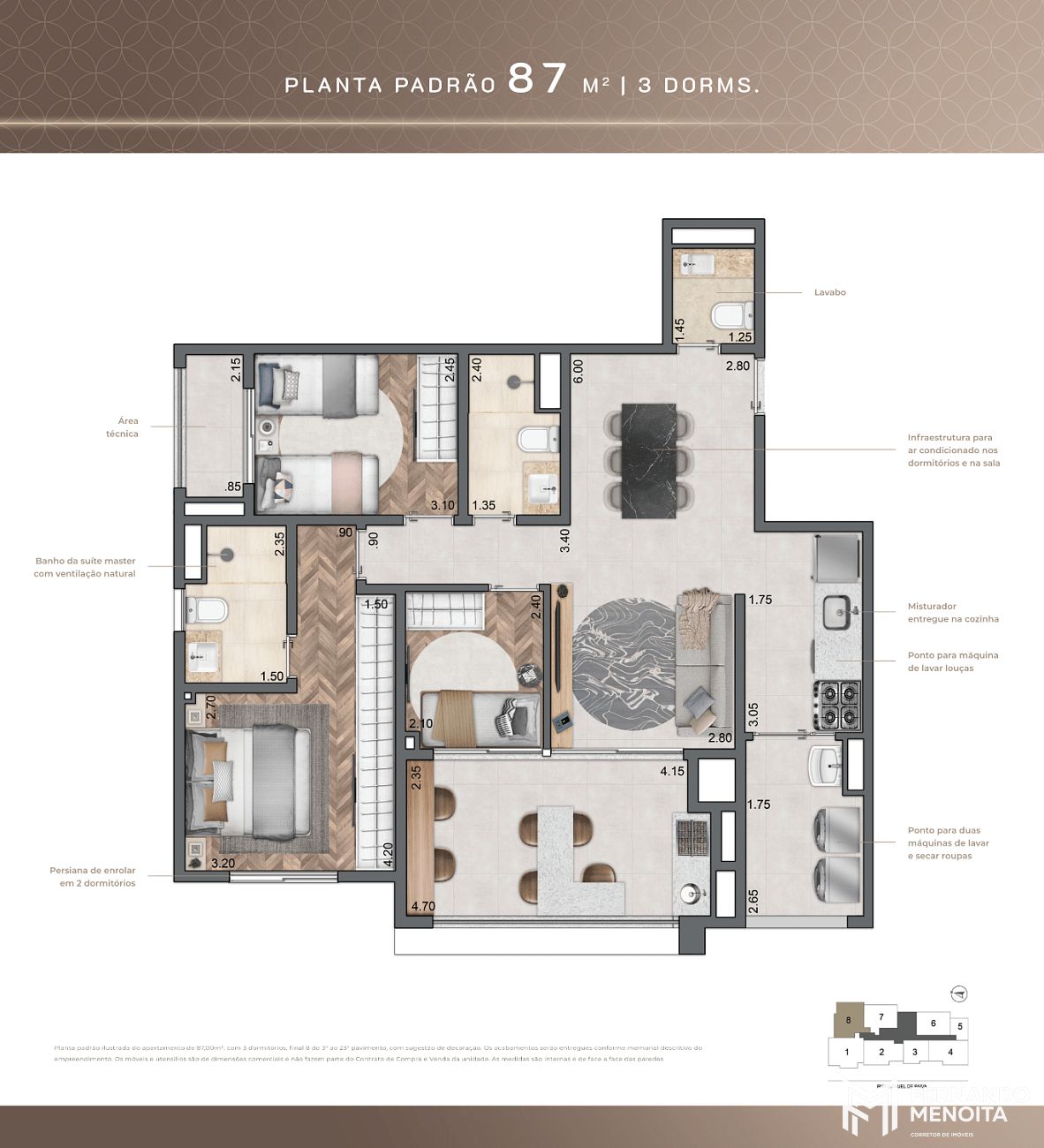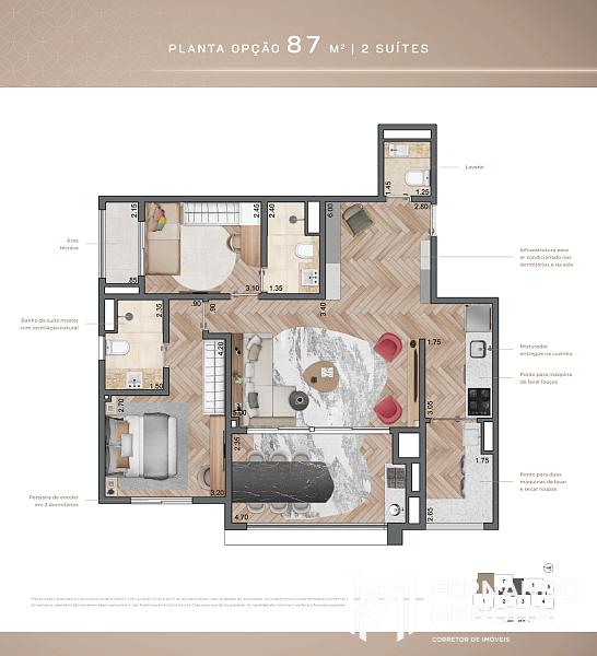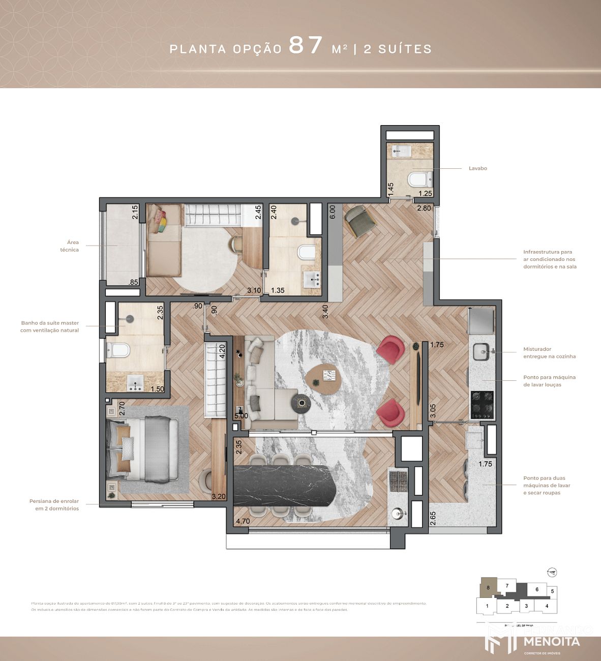 • 87 m² – opção 2 suítes (final 8)