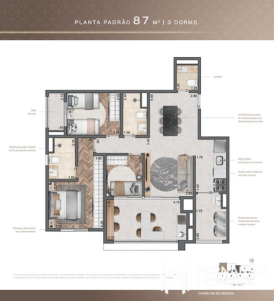 • 87 m² – 3 dormitórios (final 8 – do 3º ao 23º pavimento)