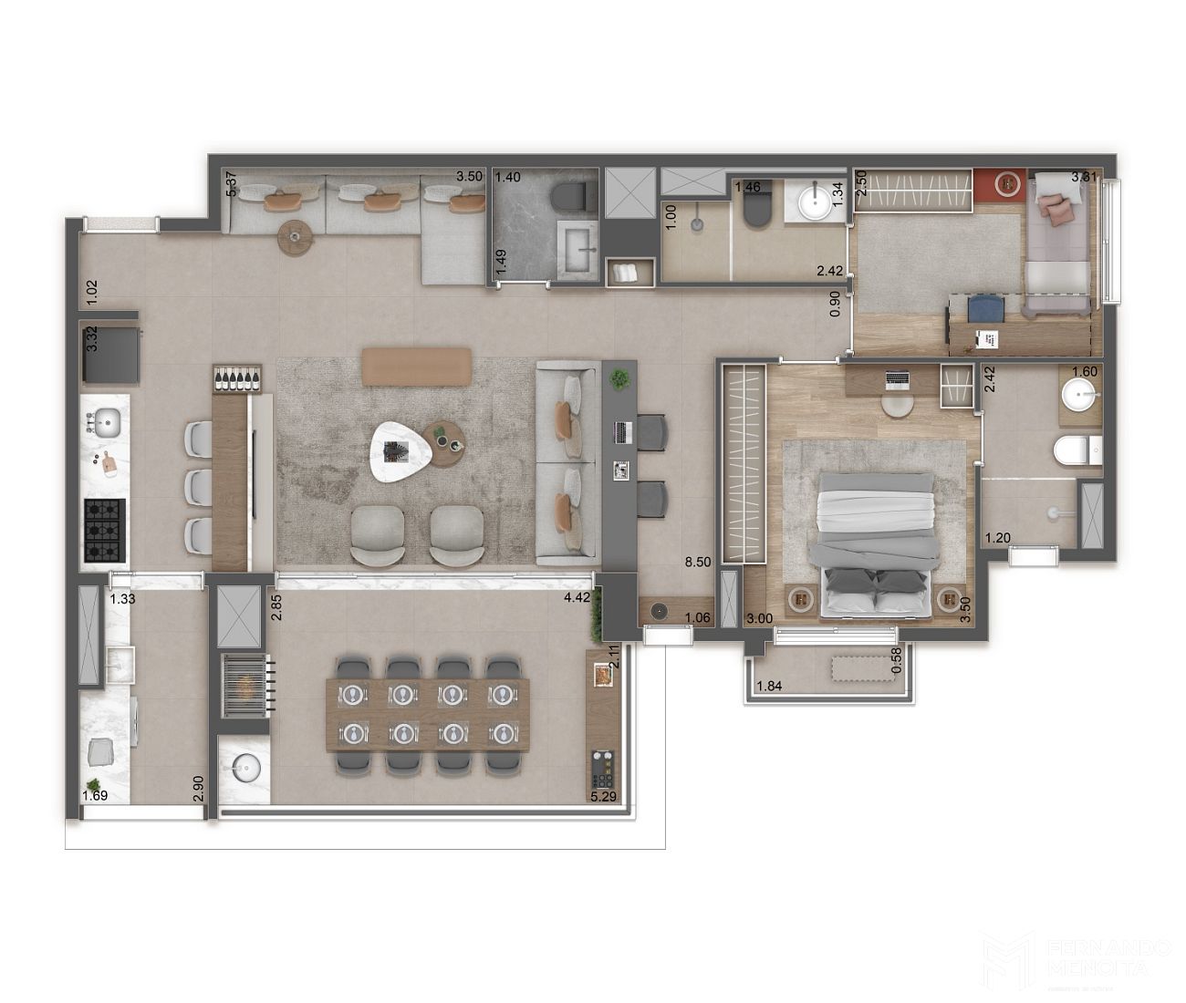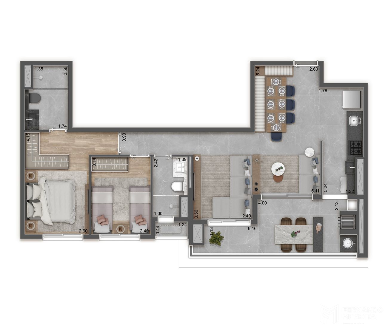 • 85 m²: 2 dormitórios (1 suíte) | 1 vaga