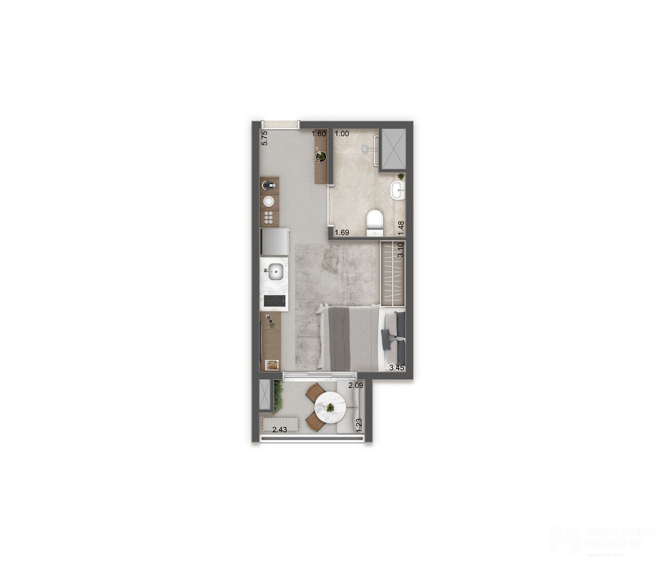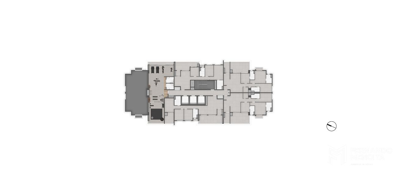 Já o setor de studios está distribuído do 4º ao 9º pavimento, com metragens a partir de 22 m², incluindo unidades de 27 m² e opções de 1 dormitório com 38 m², atendendo diferentes perfis de moradia contemporânea.