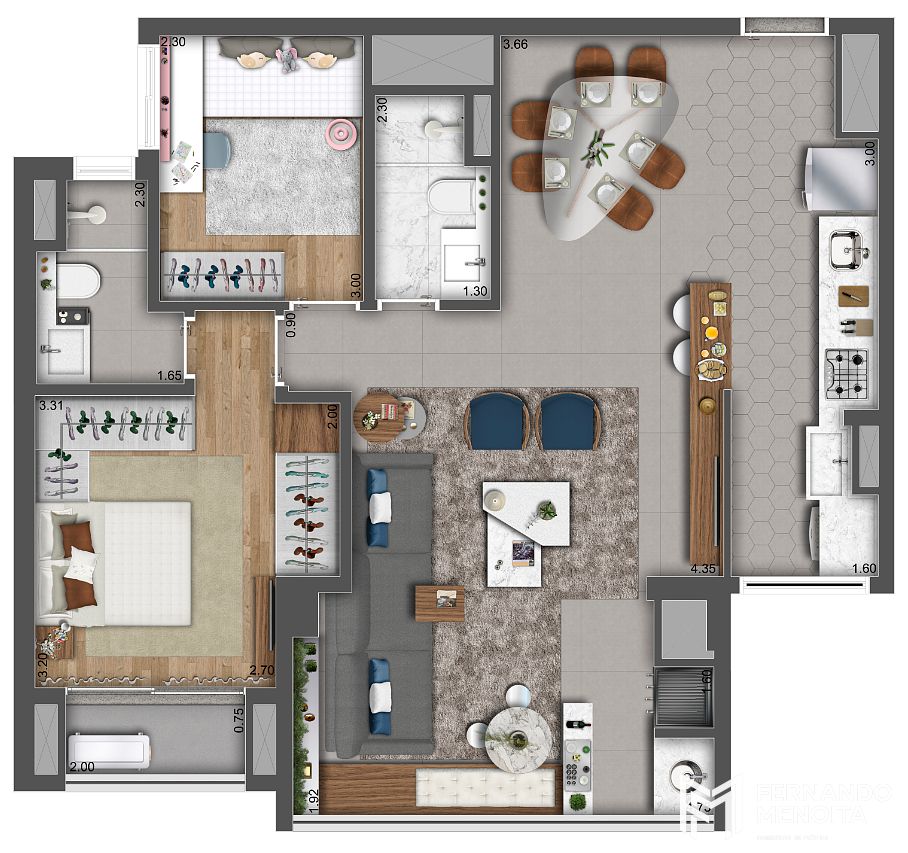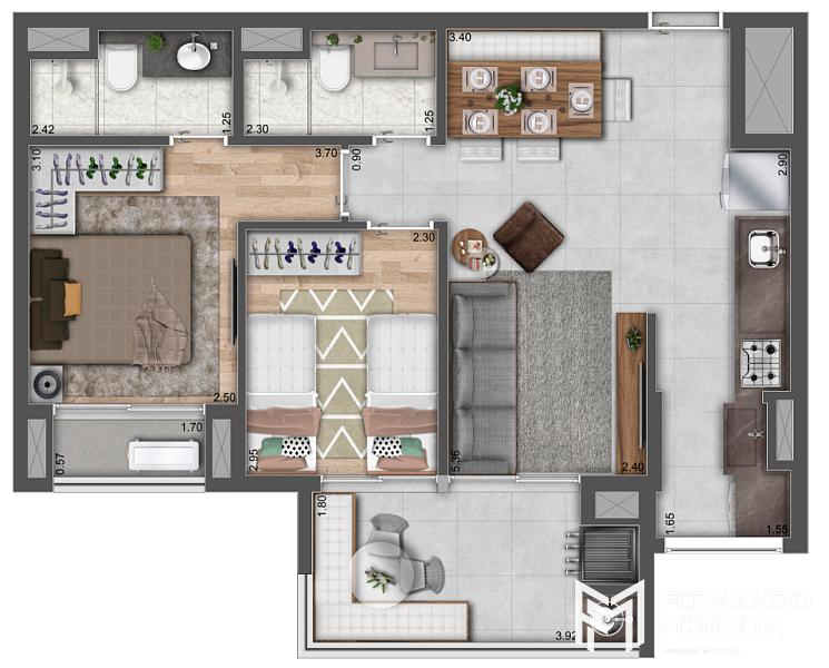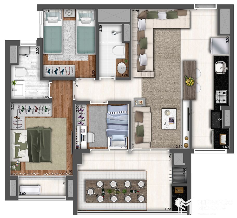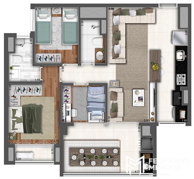 3 dormitórios (1 suíte)
