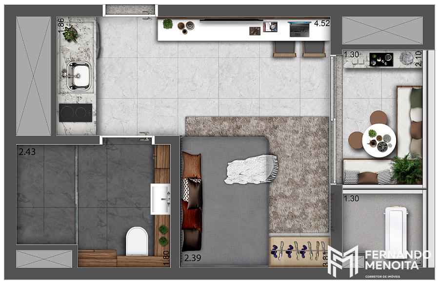 Implantado em torre única com 26 andares, o projeto foi desenvolvido para oferecer equilíbrio entre funcionalidade urbana e bem-estar, com plantas inteligentes de 2 e 3 dormitórios (62 m² e 78 m²) e studios com serviços de 26 m² e 28 m².