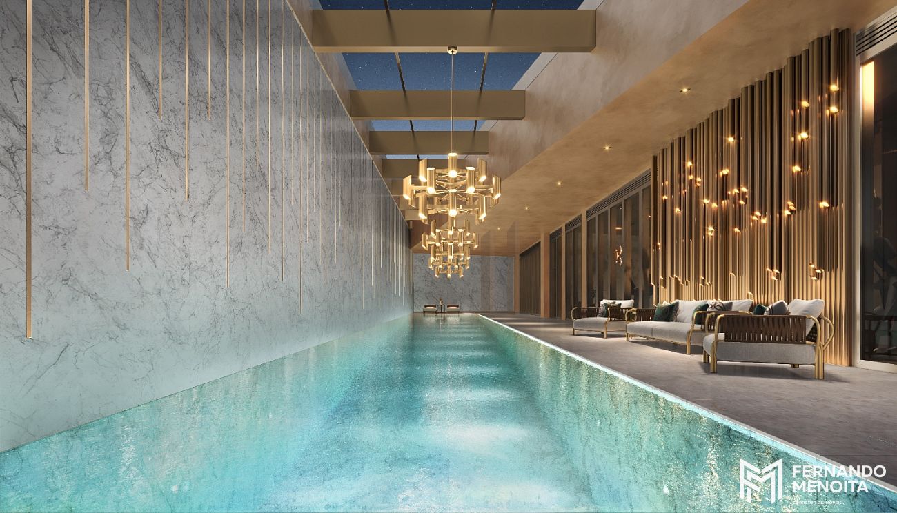 O lazer foi concebido como uma extensão do estilo de vida sofisticado do empreendimento, reunindo ambientes que proporcionam bem-estar, convivência e exclusividade. Entre os destaques estão a piscina externa com aproximadamente 25 metros, piscina coberta aquecida, quadras esportivas, fitness, spa, salão de festas, piano bar, brinquedoteca e espaços únicos como a private pool house, que oferece uma experiência reservada para receber convidados com total privacidade.