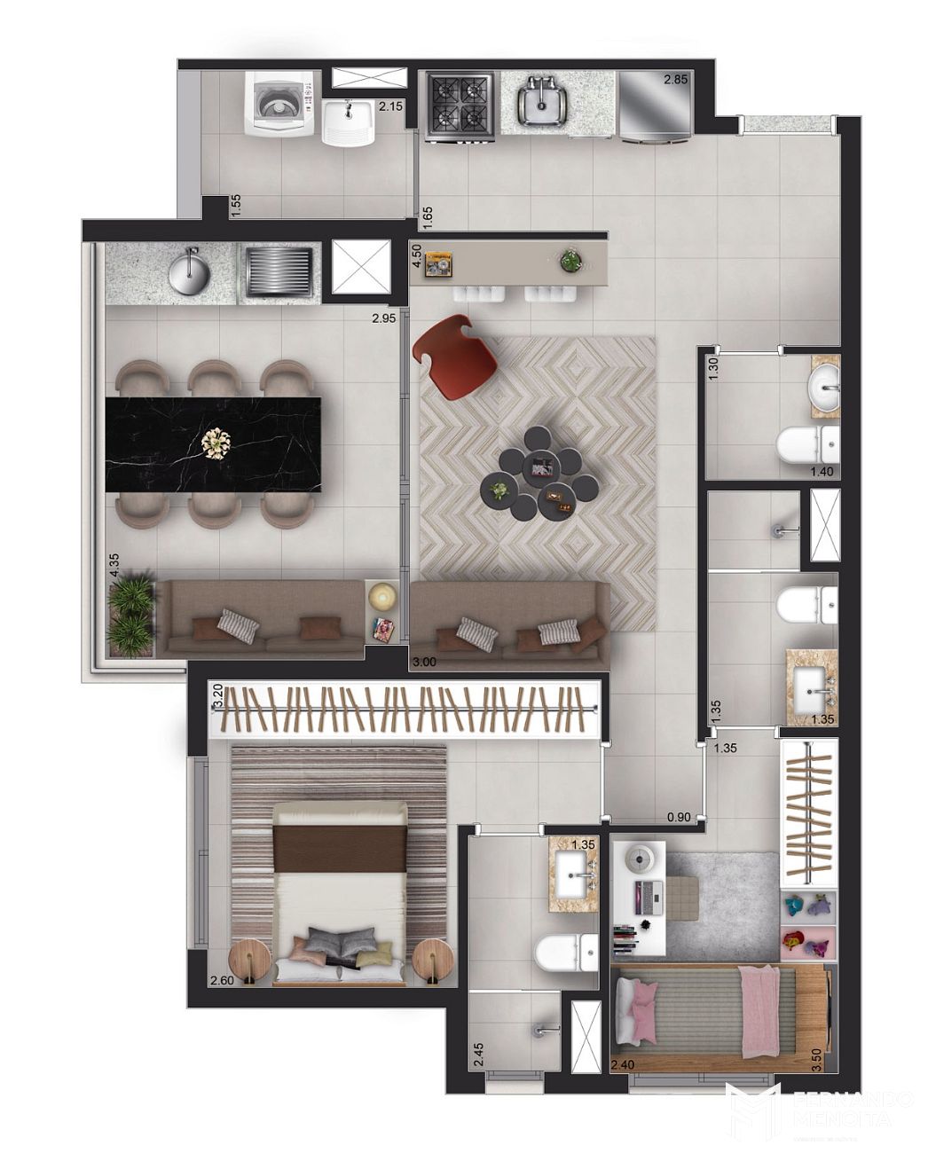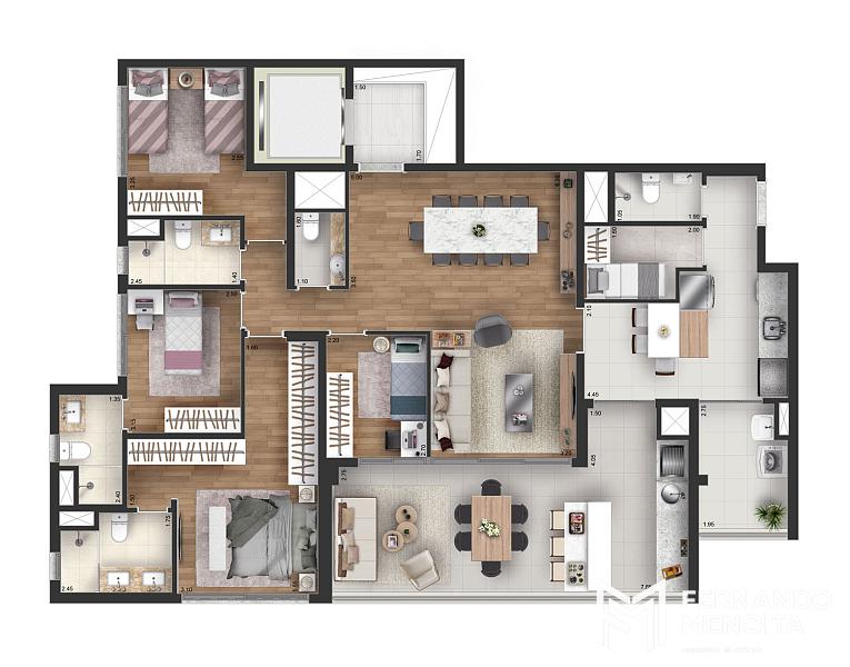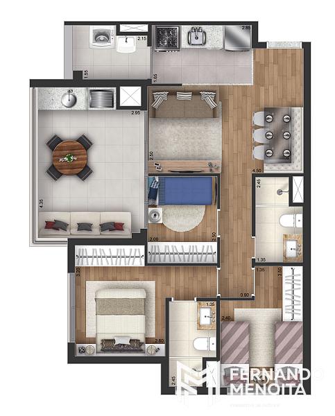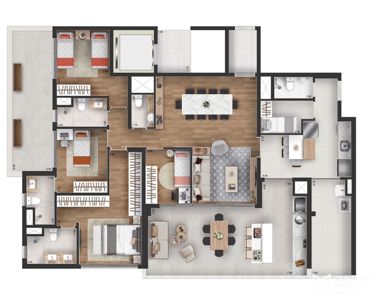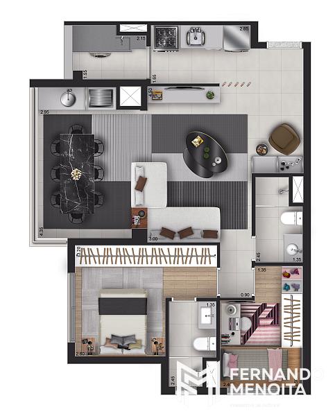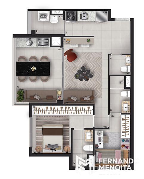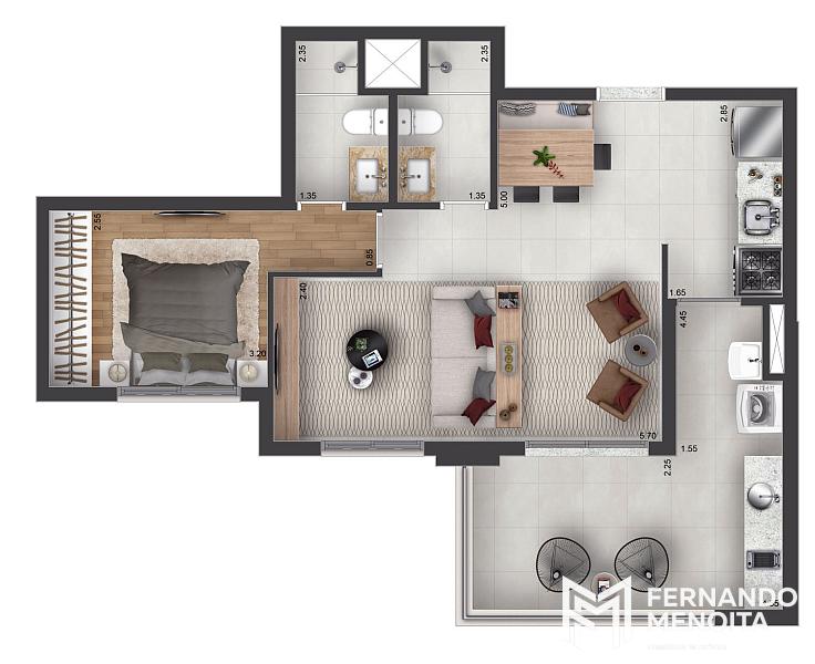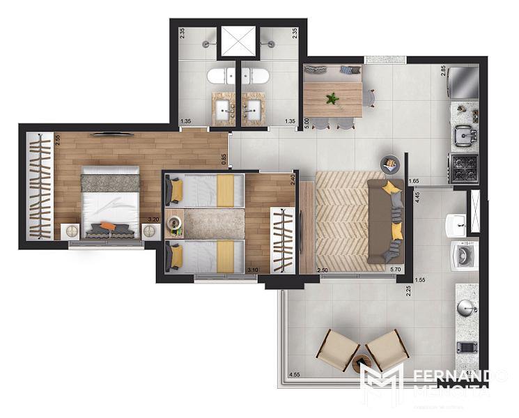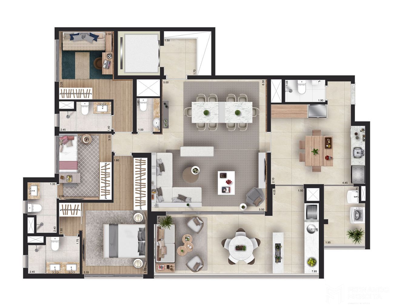 As unidades apresentam ambientes amplos, bem iluminados e com excelente aproveitamento de espaço, aliados a acabamentos de alto padrão e soluções modernas que elevam a experiência de moradia.