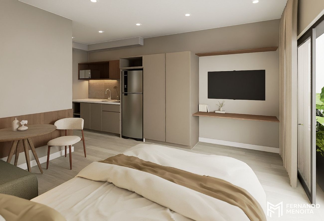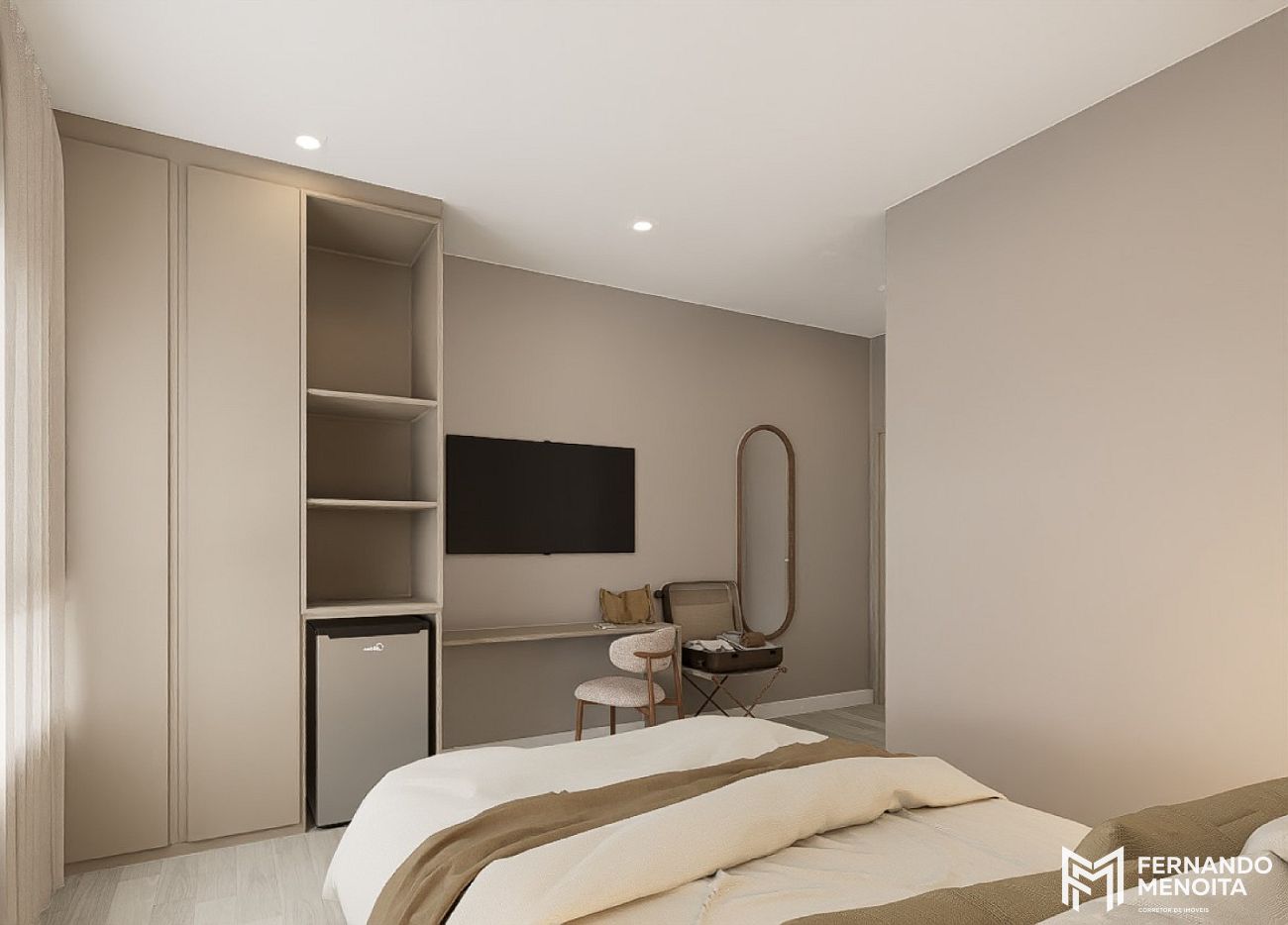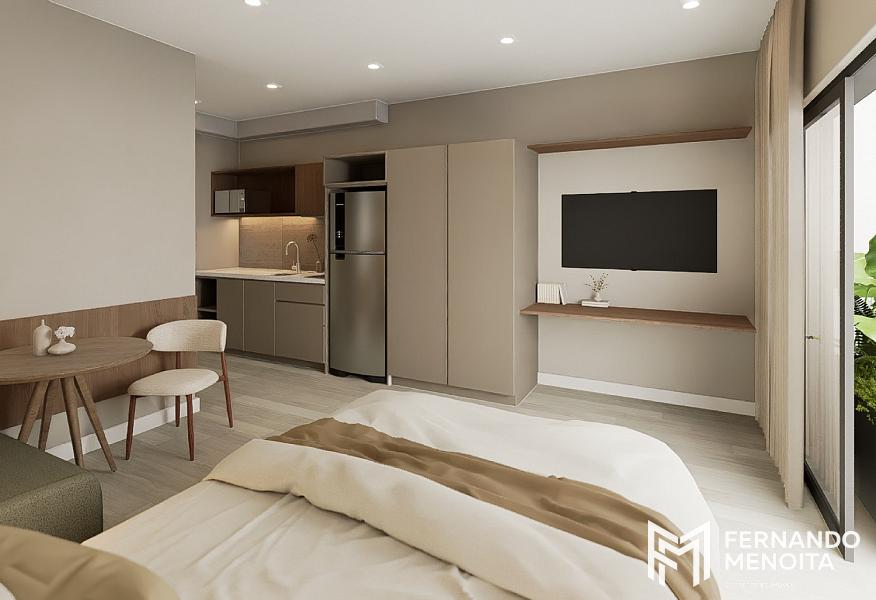 O empreendimento oferece studios e apartamentos de 1 dormitório, com metragens de 25 m² a 41 m² privativos, entregues 100% mobiliados e equipados, conforme memorial descritivo, proporcionando facilidade e agilidade desde o primeiro dia de uso.