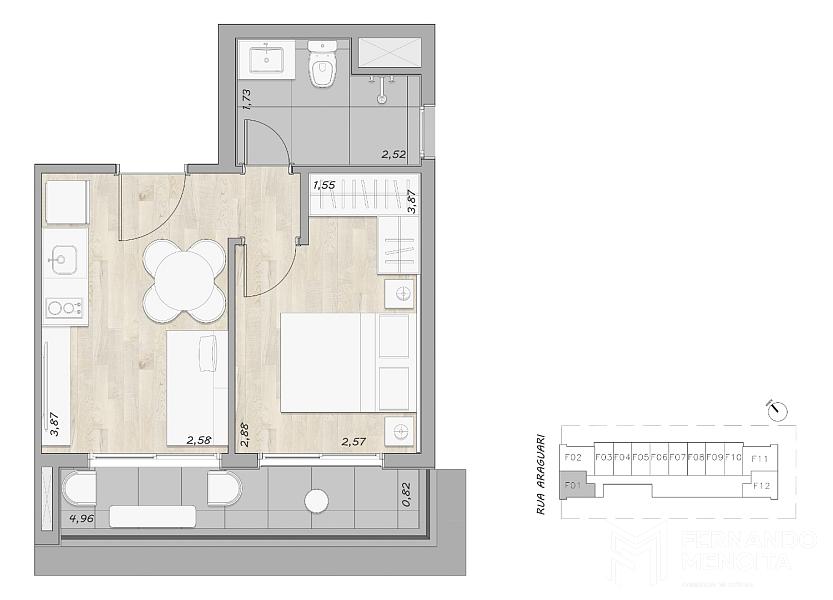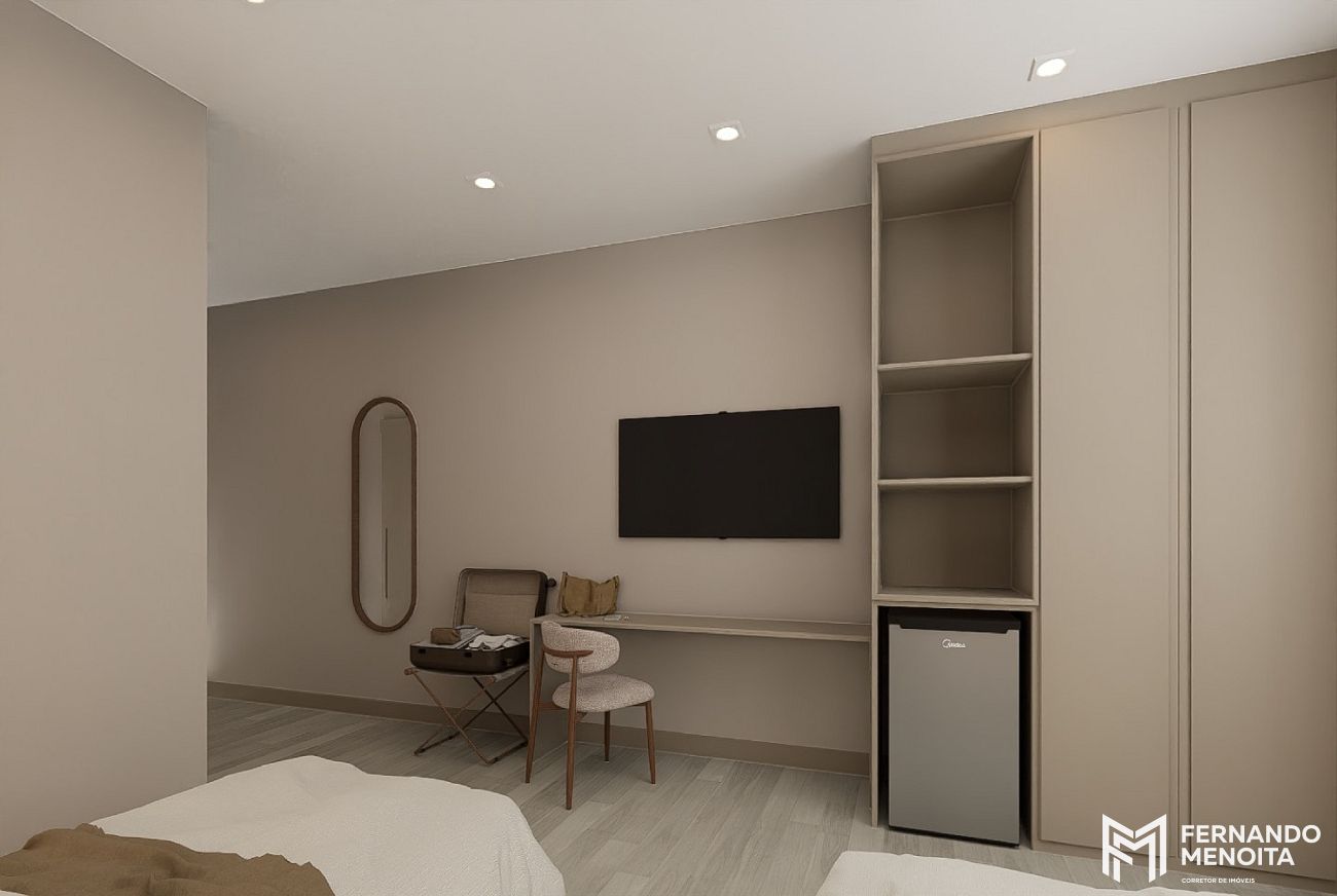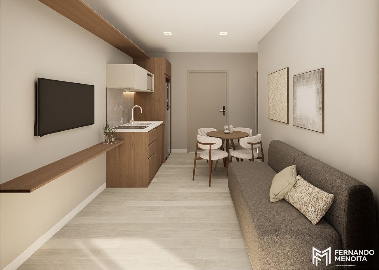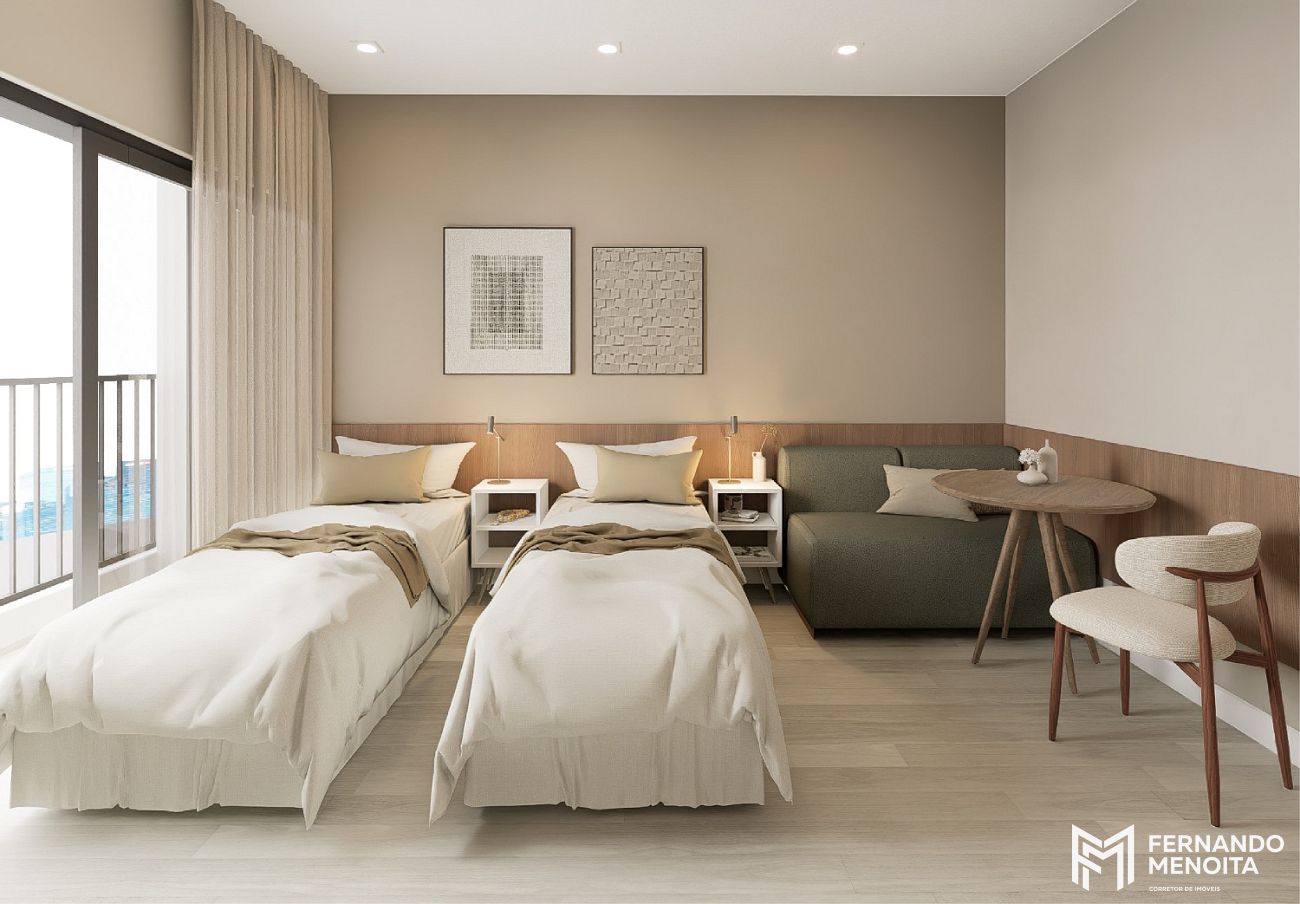 O empreendimento oferece studios e apartamentos de 1 dormitório, com metragens de 25 m² a 41 m² privativos, entregues 100% mobiliados e equipados, conforme memorial descritivo, proporcionando facilidade e agilidade desde o primeiro dia de uso.