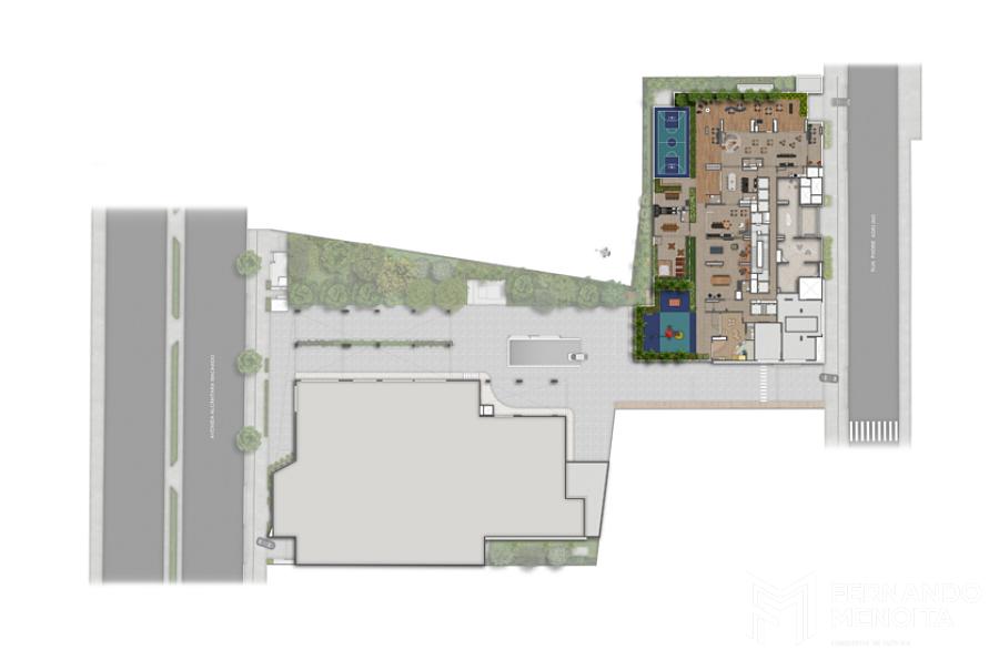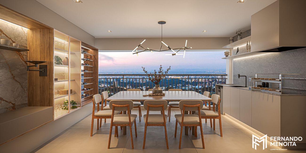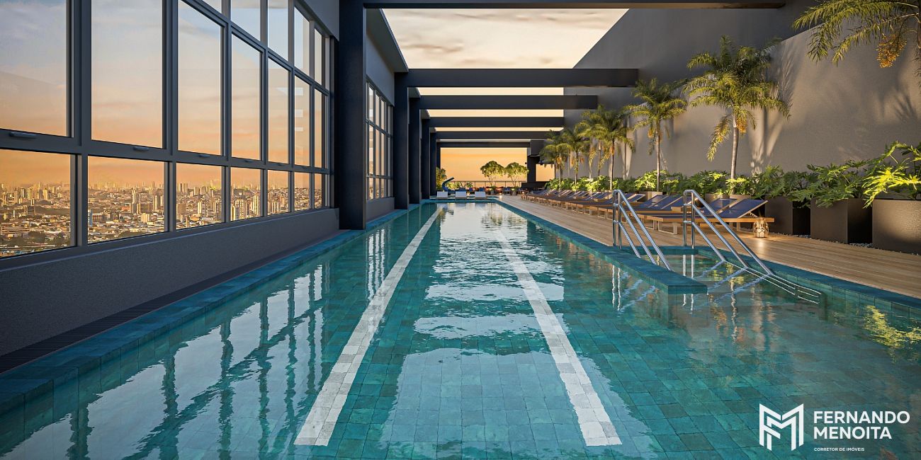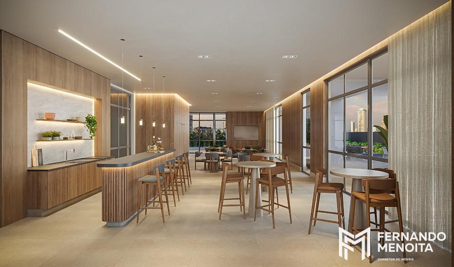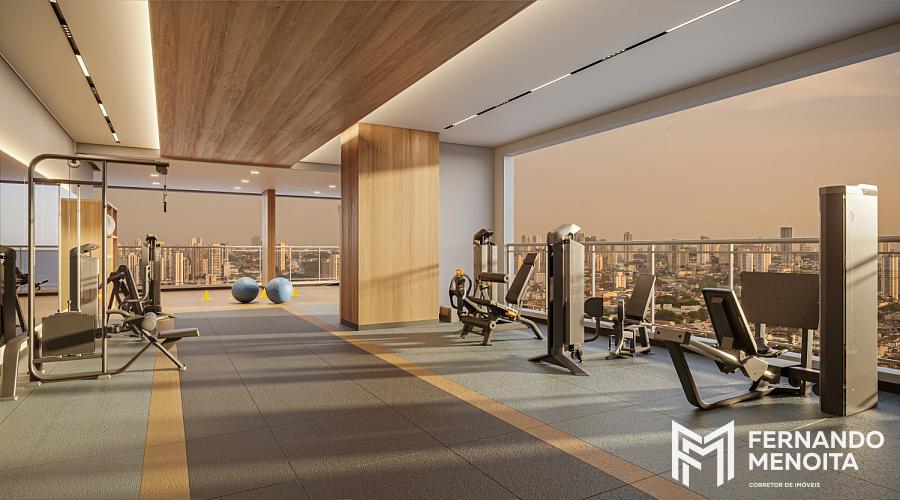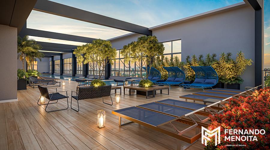 O grande diferencial está no lazer elevado, com piscina com raia de 25 metros, fitness com terraço coberto (261 m²), sauna, lounge externo e áreas de convivência com vista aberta da cidade. No 1º pavimento, o condomínio oferece salão de festas, espaço gourmet, coworking, quadra recreativa e casa de campo com spa, compondo estrutura de lazer completa.