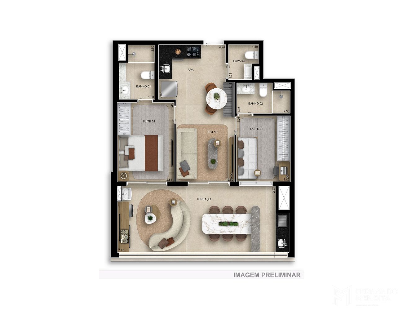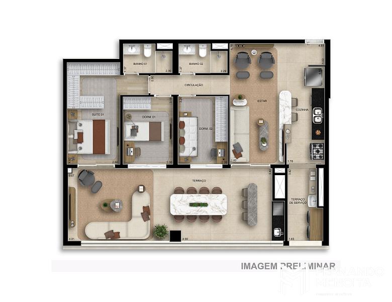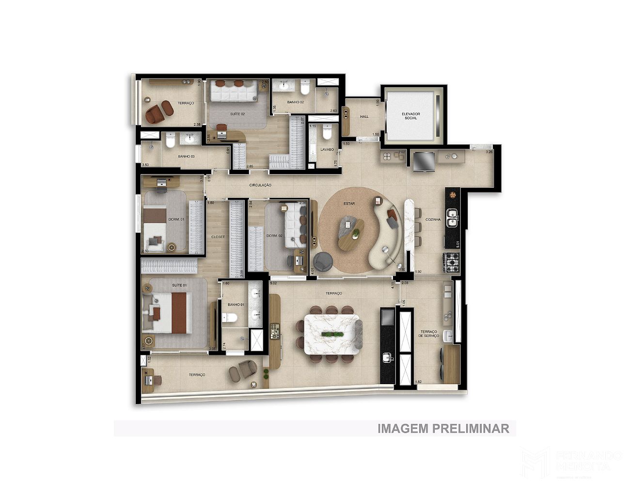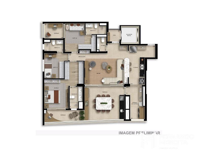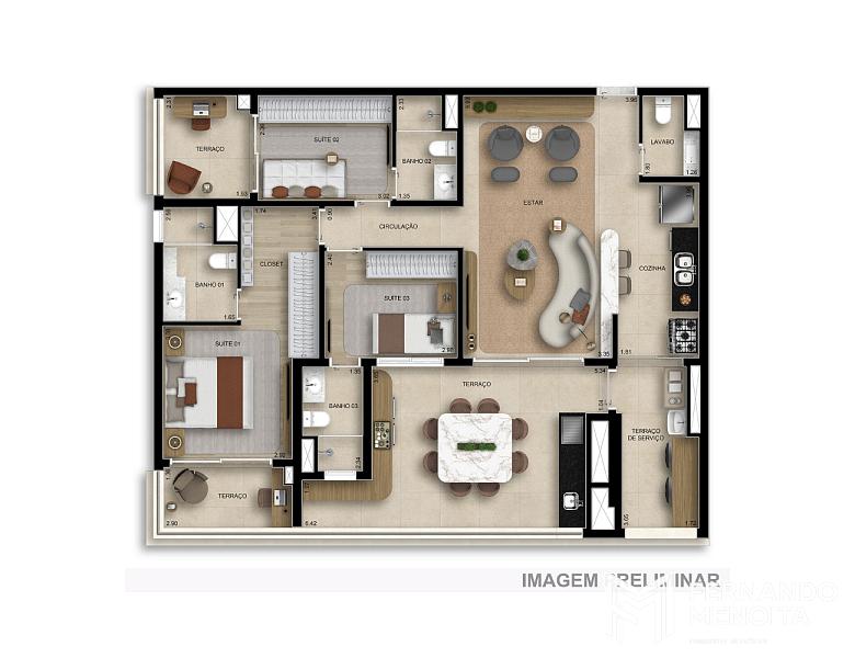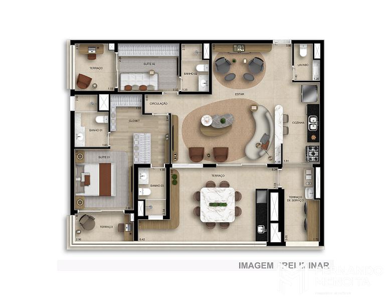 • 155 m² – 3 suítes (opção ampliada com lavabo)