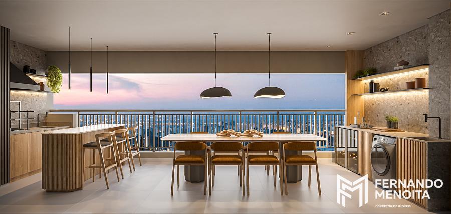 O residencial conta com 30 pavimentos residenciais (2º ao 31º) e lazer no 32º pavimento, oferecendo unidades de 155 m², 125 m², 120 m², 117 m² e 74 m², com opções de 4 e 3 dormitórios (com suítes). Todas as plantas valorizam integração entre living e varanda, com terraço social nivelado com a sala e churrasqueira a carvão.