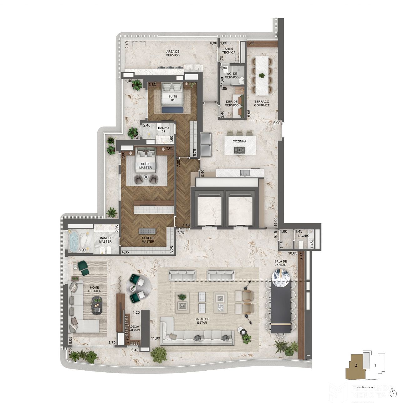 • Final 2 — Garden de 4 suítes com 404,50 m² — 4 vagas vinculadas