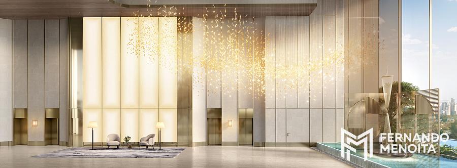 Implantado em um terreno de aproximadamente 5.859,21 m², o empreendimento possui uma torre residencial com 55 pavimentos e um total de 105 residências. As unidades possuem amplas metragens e plantas com 4 suítes, além de opções garden e penthouses exclusivas com pé-direito duplo.