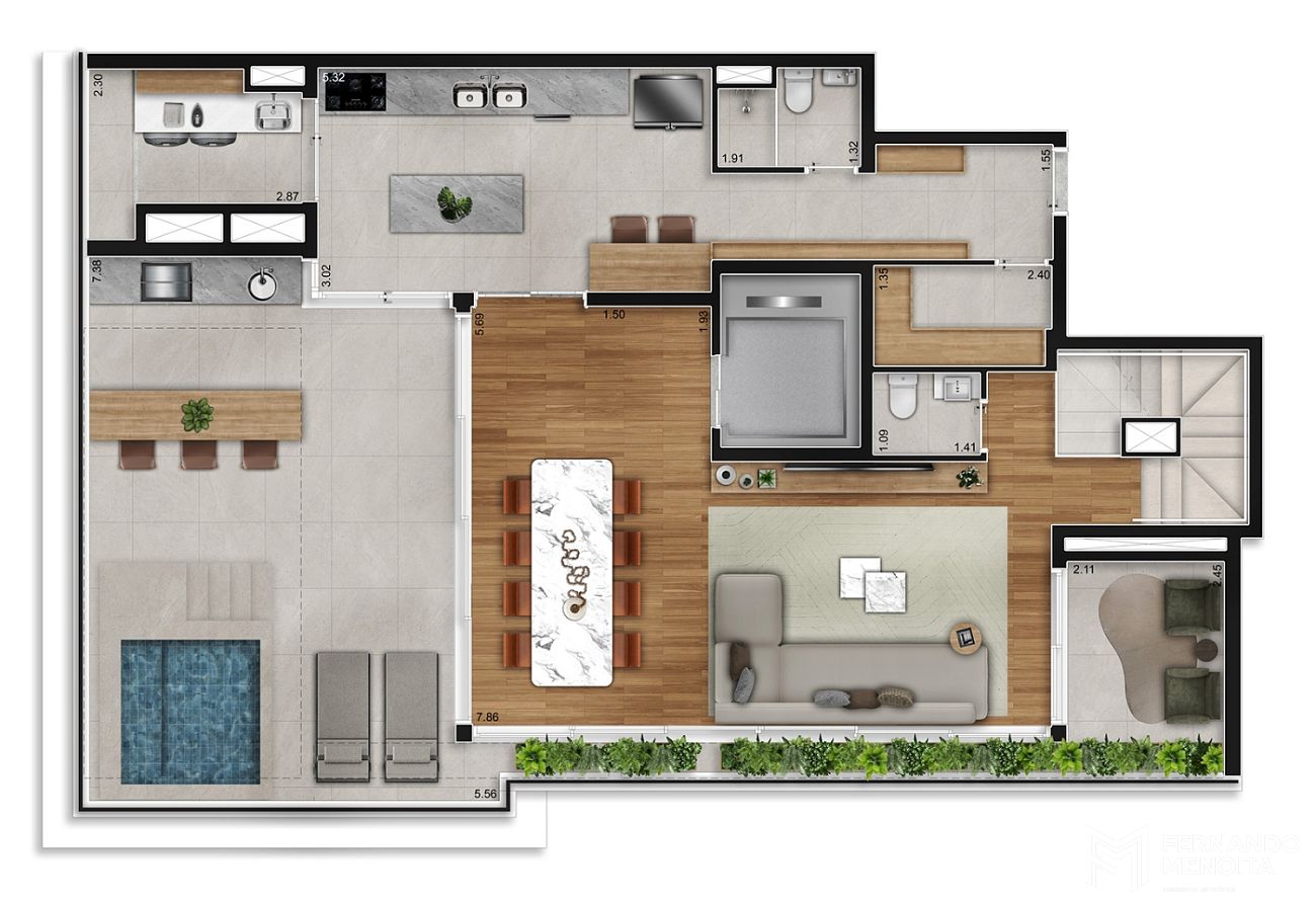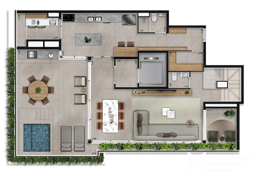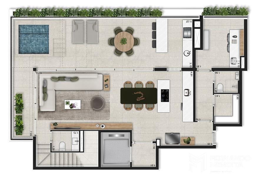 As áreas comuns reforçam o conceito de bem-estar e lazer, com espaços entregues equipados e pensados para o uso cotidiano, incluindo piscina climatizada, fitness com consultoria especializada, coworking, salão de festas gourmet, espaço pet e áreas de convivência, tudo integrado a um paisagismo que valoriza o verde e a sensação de refúgio urbano.