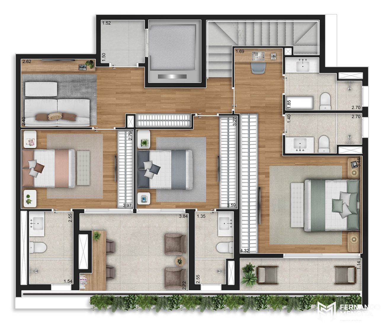 • 167,95 m² – 3 suítes – 2 ou 3 vagas (26 unidades)