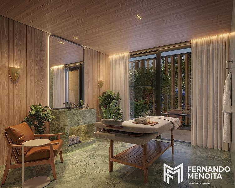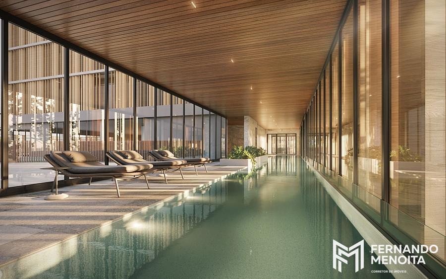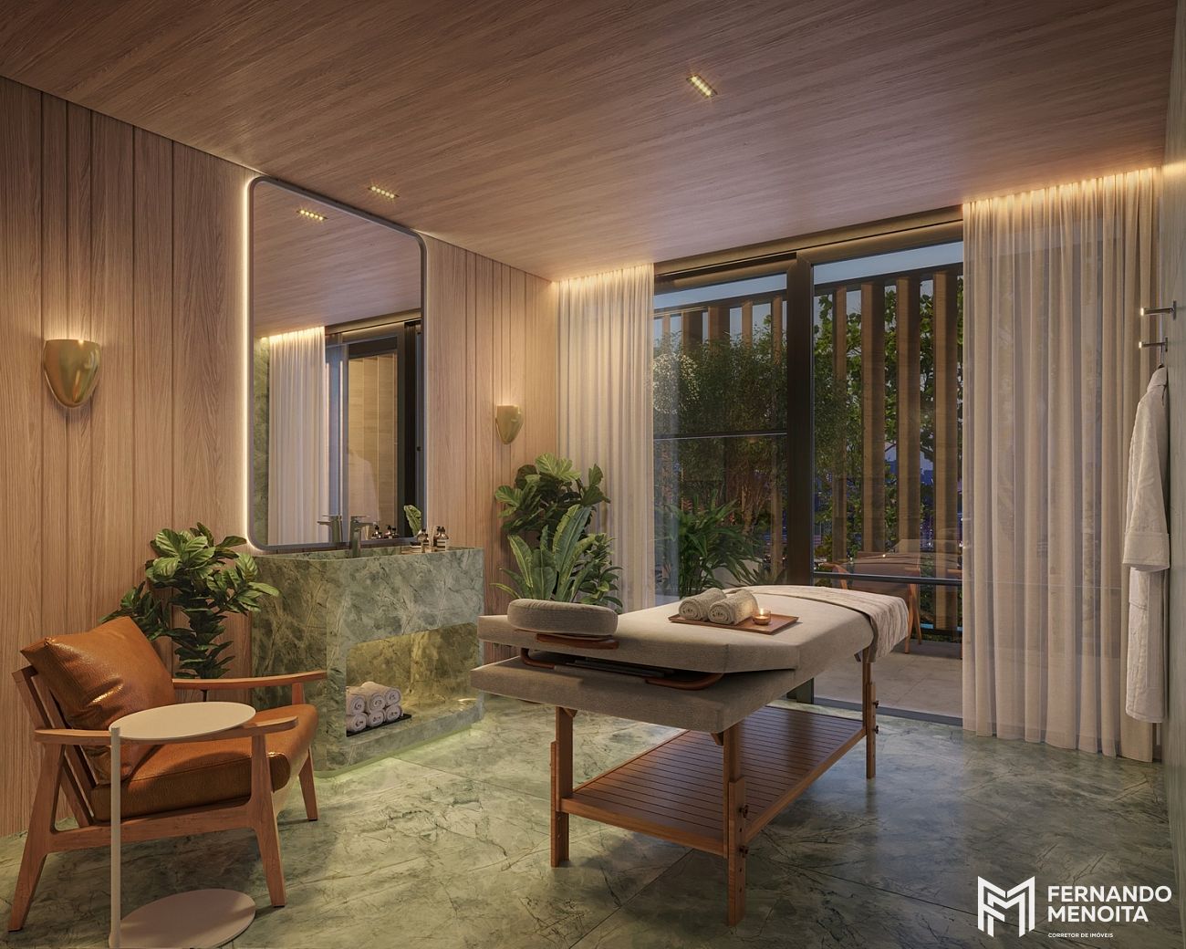As áreas comuns elevam o conceito de bem-estar a um novo patamar. O empreendimento oferece uma estrutura completa de lazer e conveniência, com quadra de tênis oficial, piscinas adulto, infantil e aquecida com raia, spa completo, academia de alto nível, espaços dedicados ao autocuidado, além de ambientes sociais pensados para convivência, trabalho e relaxamento. O lobby com pé-direito duplo reforça a imponência e a atmosfera artística do projeto desde o primeiro contato.