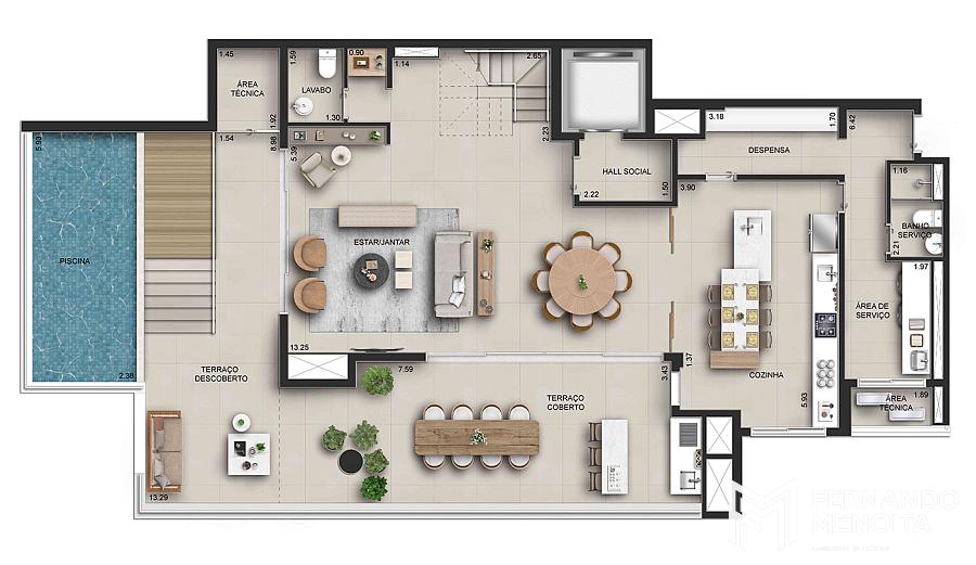 • 359,64 m² unidade privativa + 3,76 m² hall social exclusivo