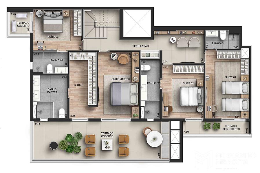 • 281 m² | Giardino (finais 02 e 03) | 4 suítes | 02 un.