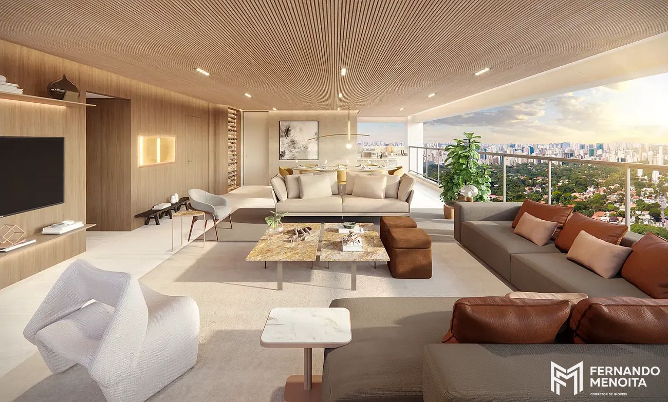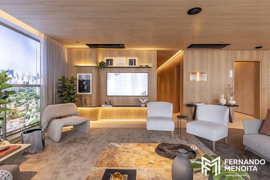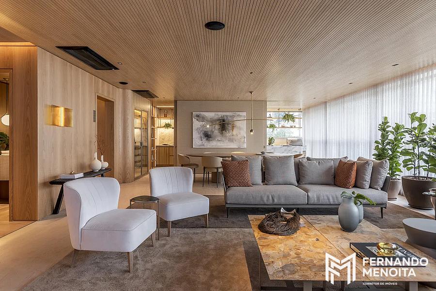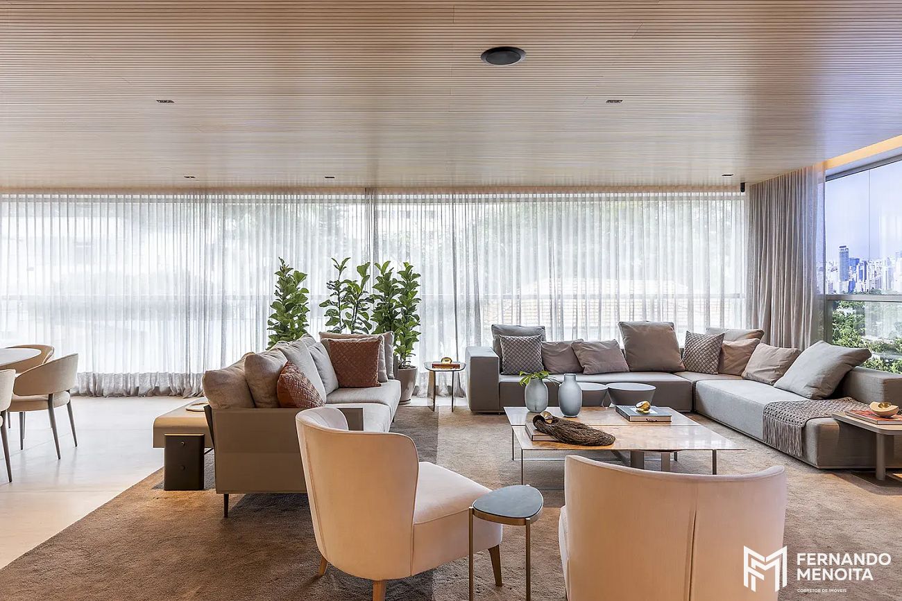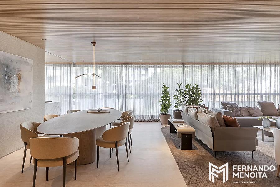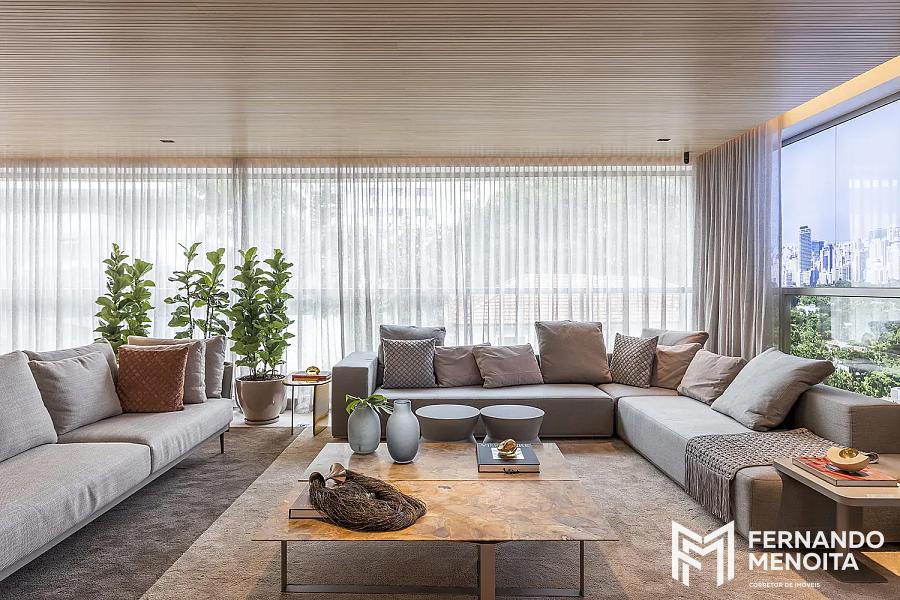 • Living com caixilho piso-teto e integração total ao terraço