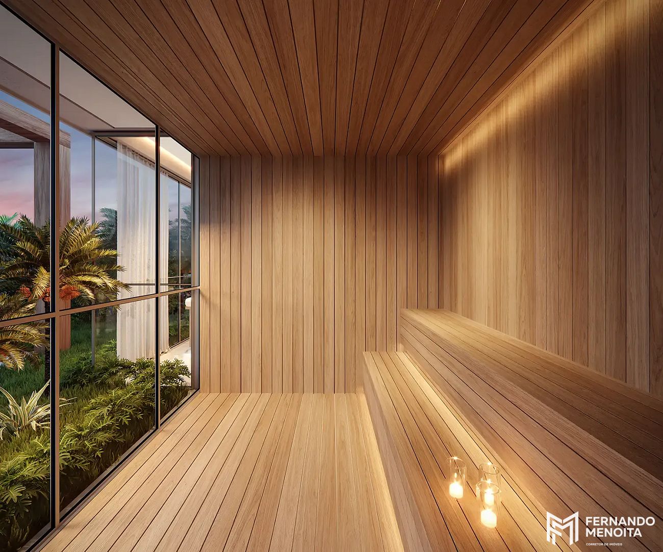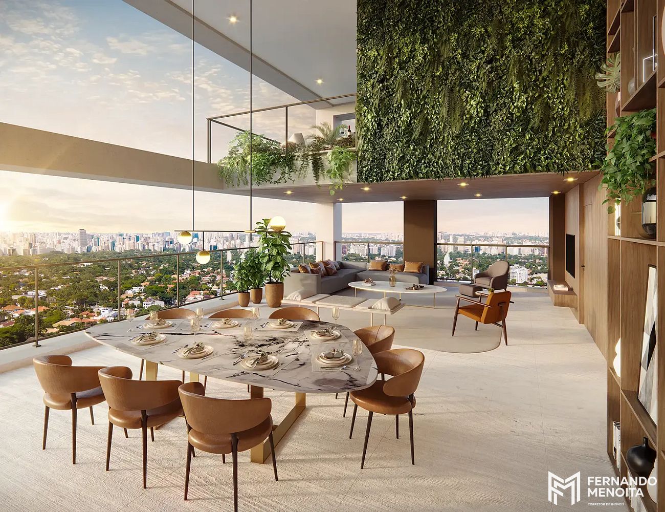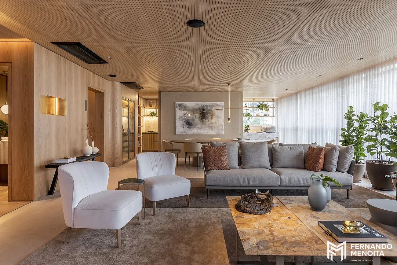 • Living com caixilho piso-teto e integração total ao terraço
