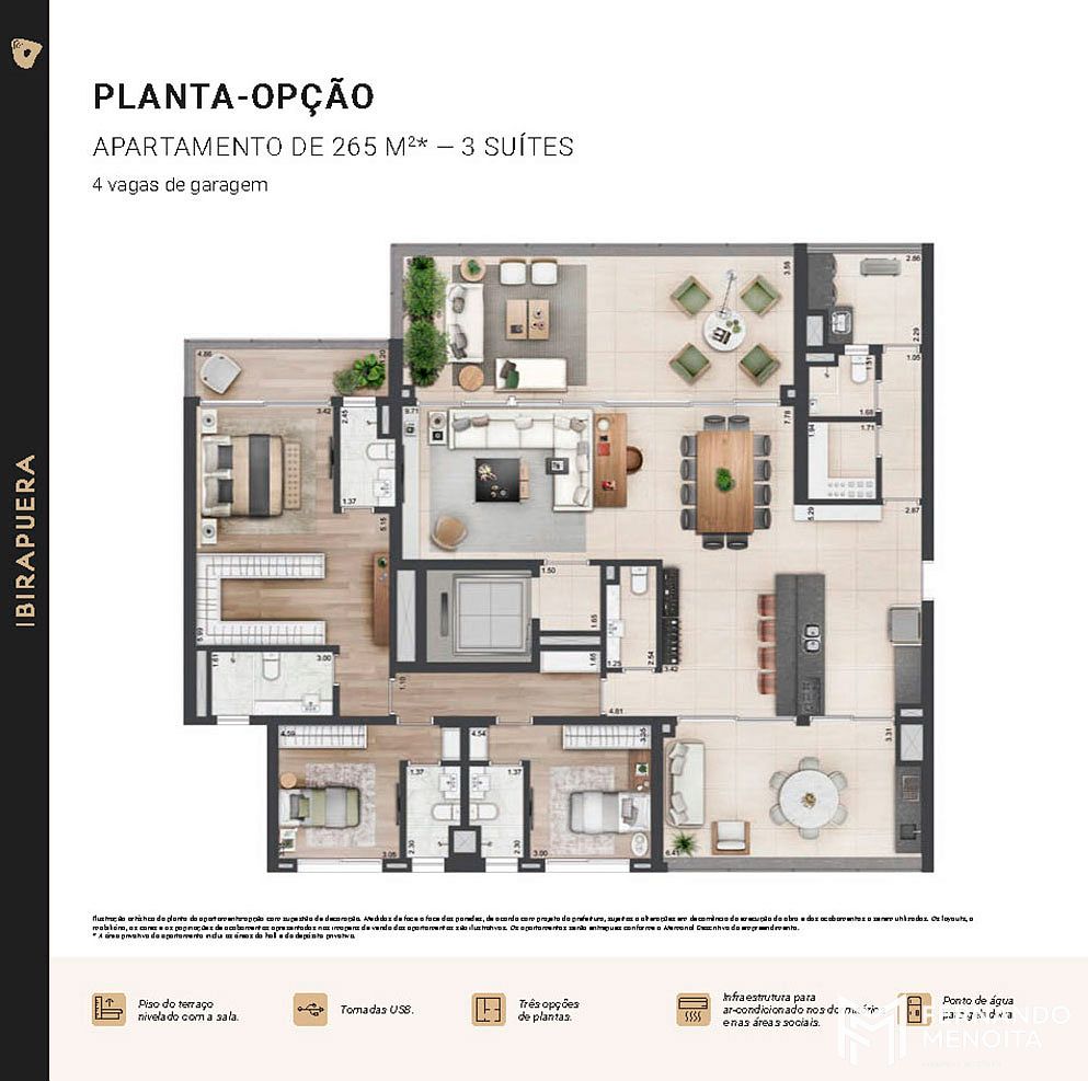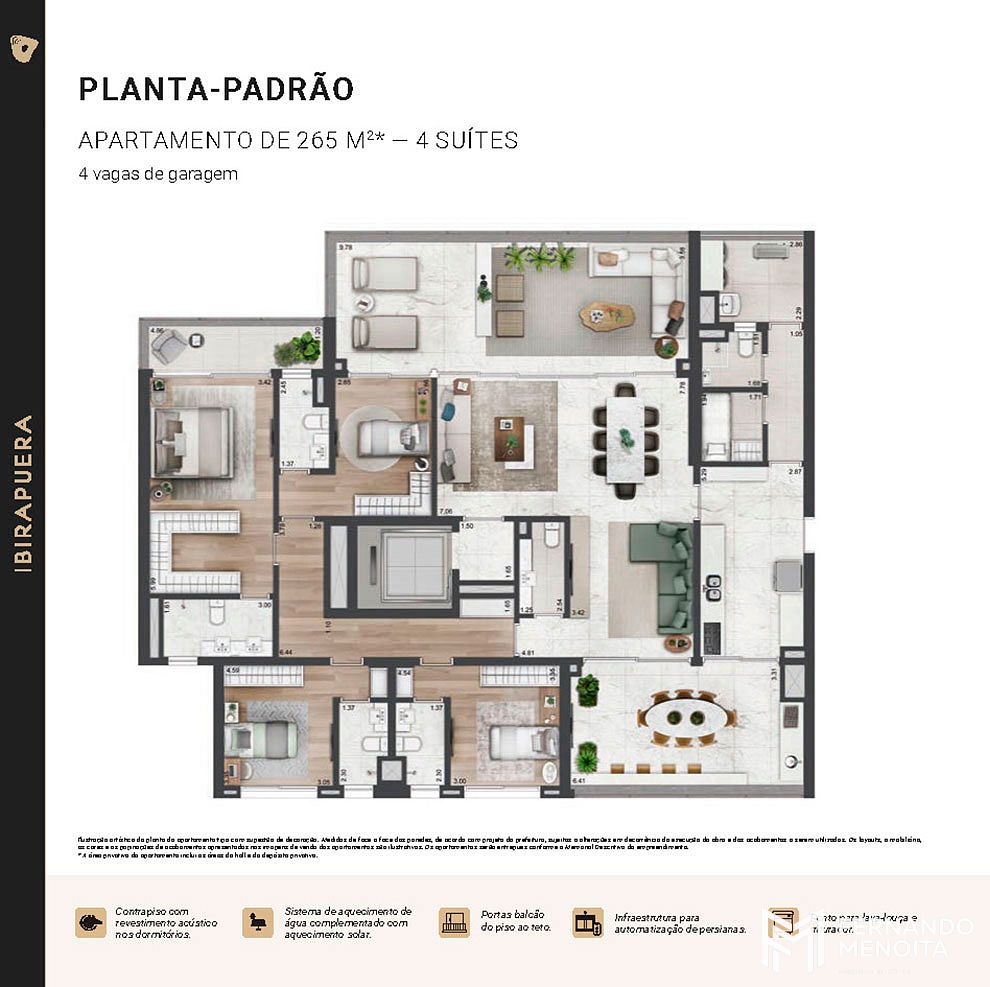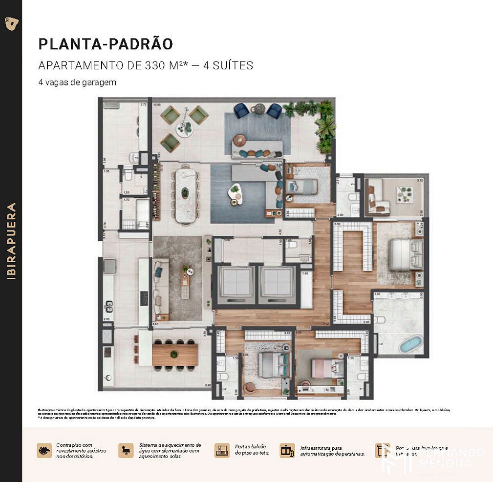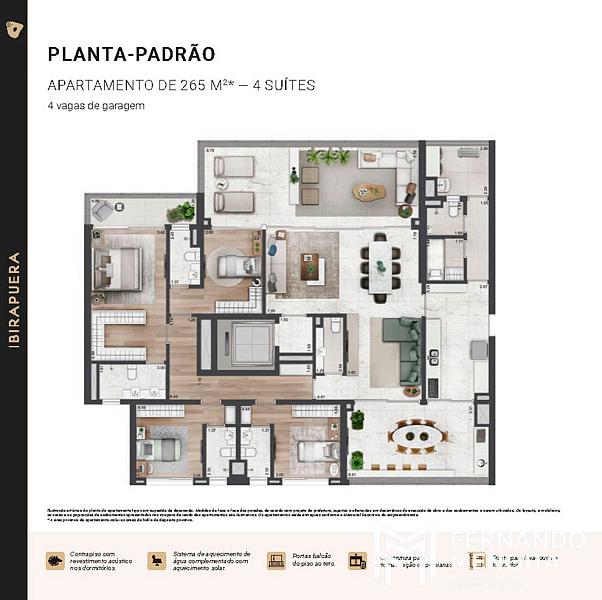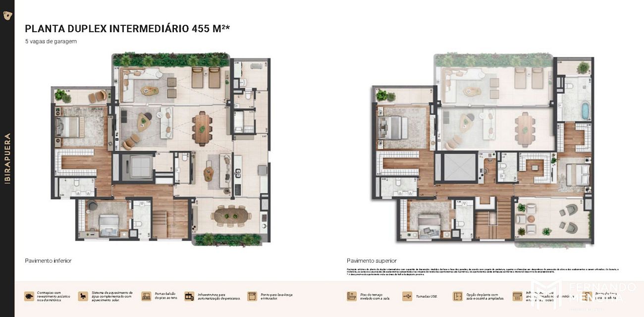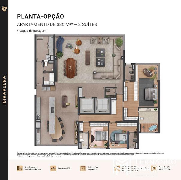 Inspirada no Parque Ibirapuera, a torre traduz um estilo de vida contemporâneo, onde arquitetura, paisagismo, tecnologia e sustentabilidade coexistem em perfeita harmonia. Os apartamentos possuem plantas amplas e bem resolvidas, com metragens que variam de 265 a 330 m², além de unidades duplex de 422 a 552 m², oferecendo conforto absoluto, privacidade e sofisticação em cada detalhe.