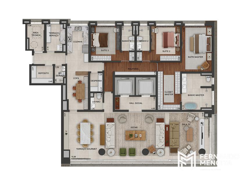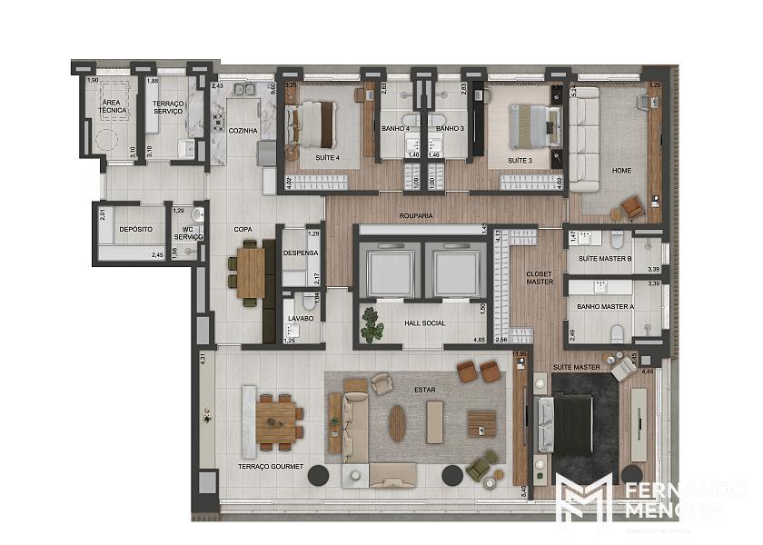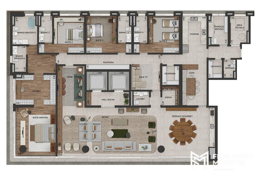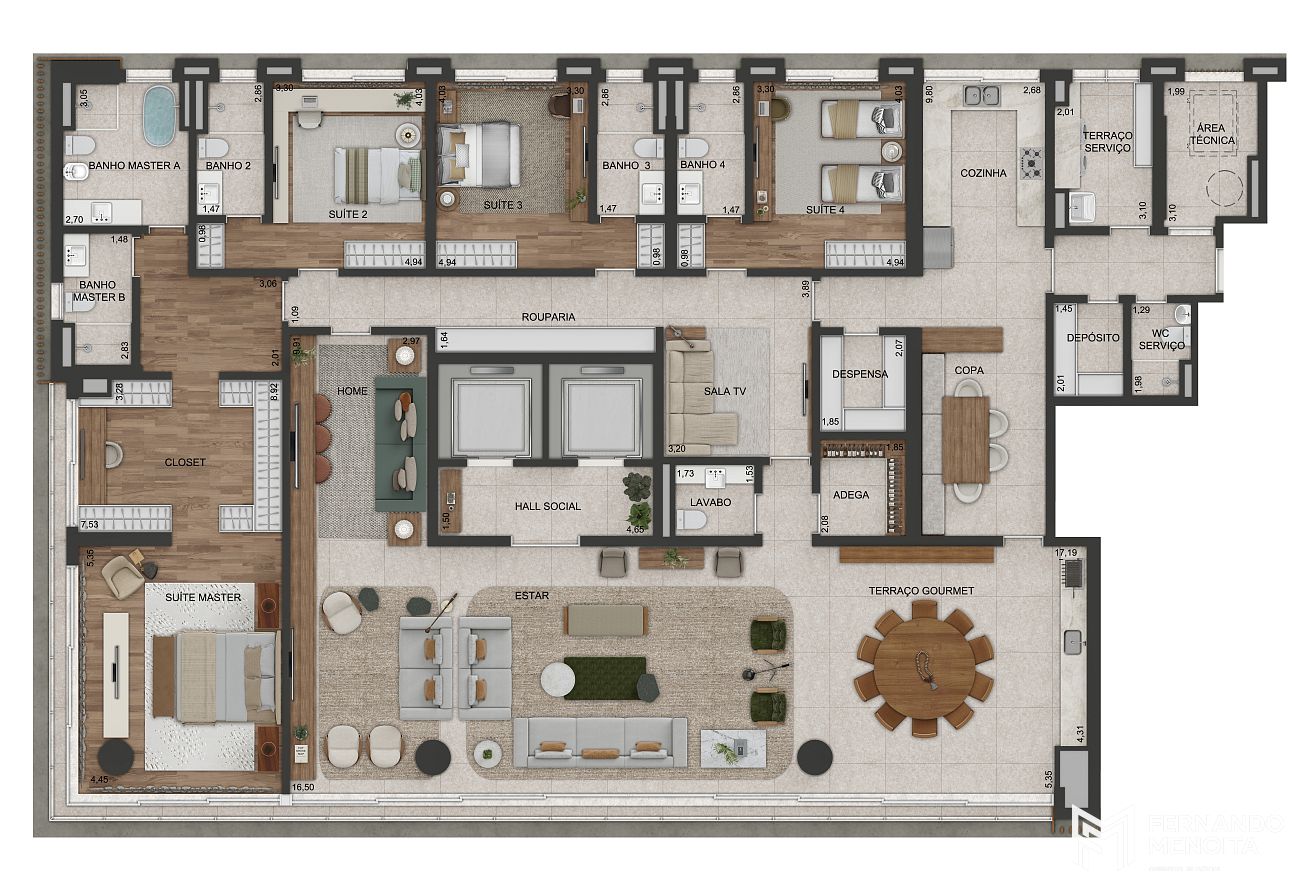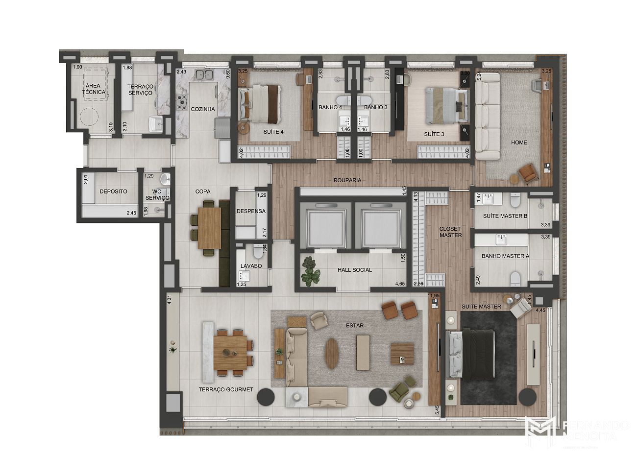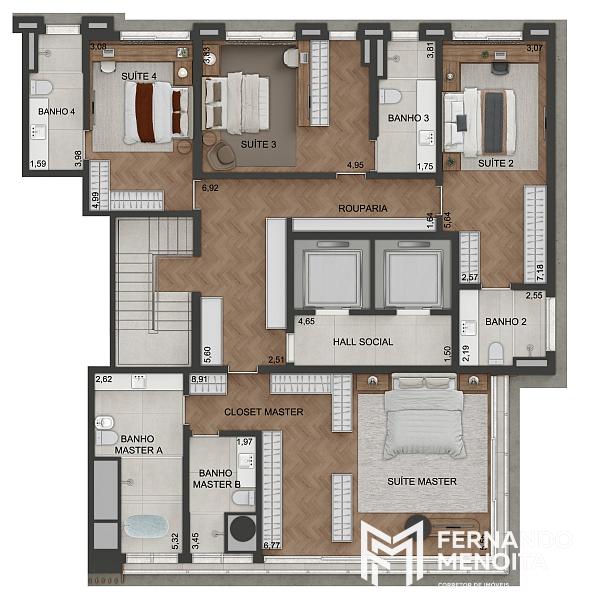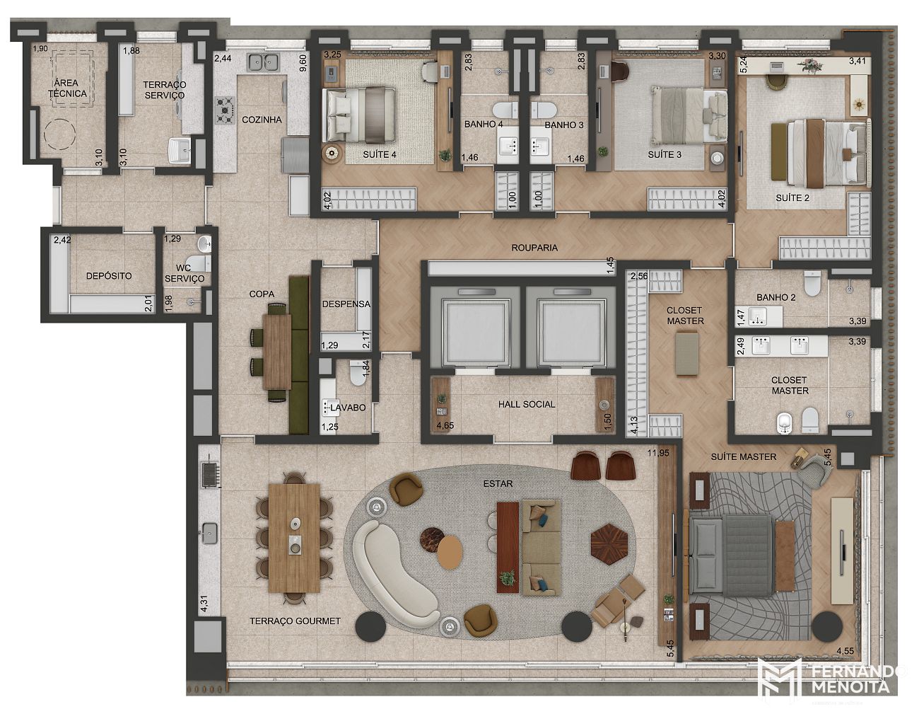 • Apartamentos tipo de 293 m² – 4 suítes – 4 vagas