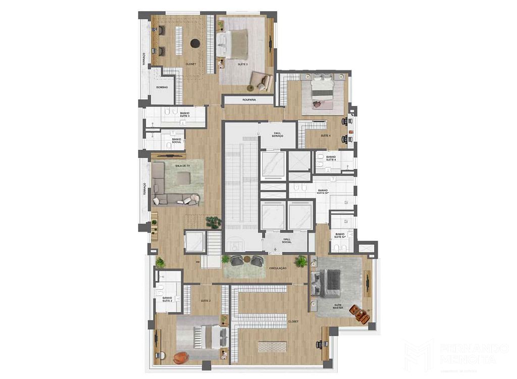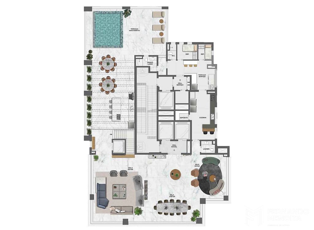 • Apartamento Garden: 547,97 m² (sendo 172,80 m² de terraço descoberto)