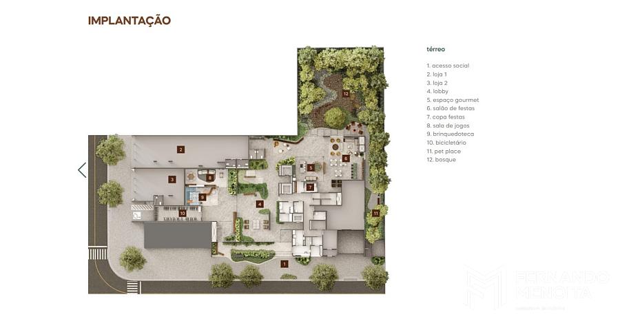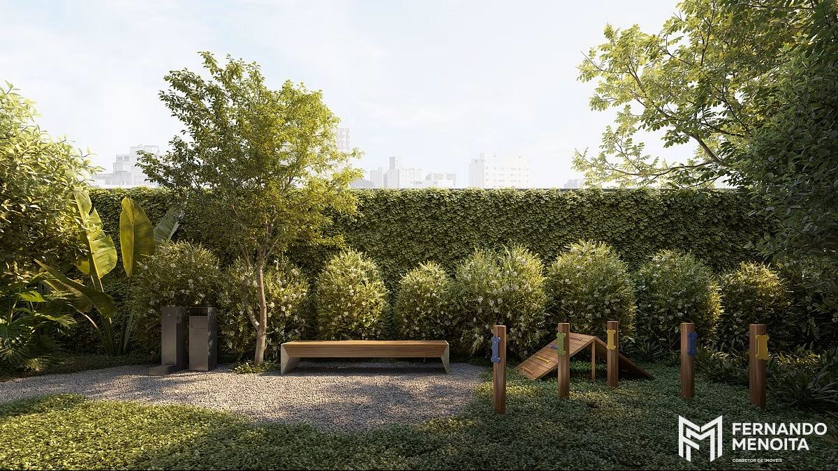 Um dos grandes diferenciais do projeto é a presença de um bosque privativo com mais de 400 m², criando uma experiência rara de contato com a natureza dentro de um ambiente urbano consolidado.