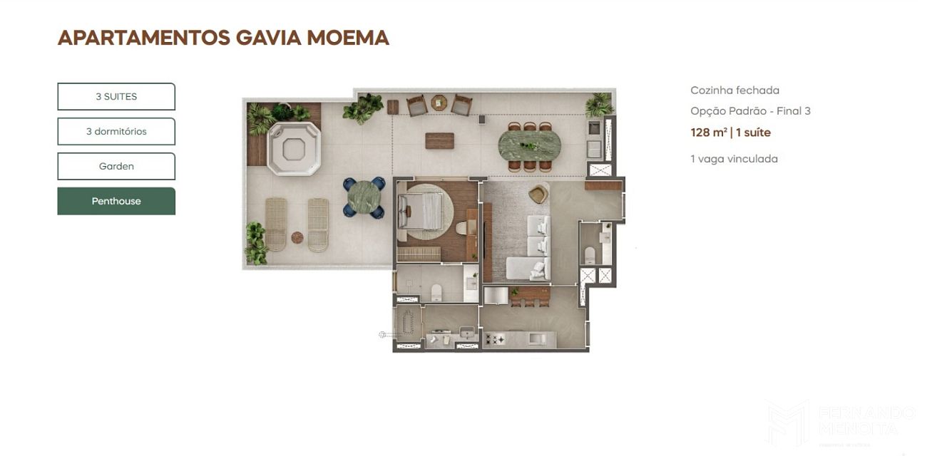 • Penthouse (1 suíte): 128 m², 147 m² e 149 m² | 1 vaga