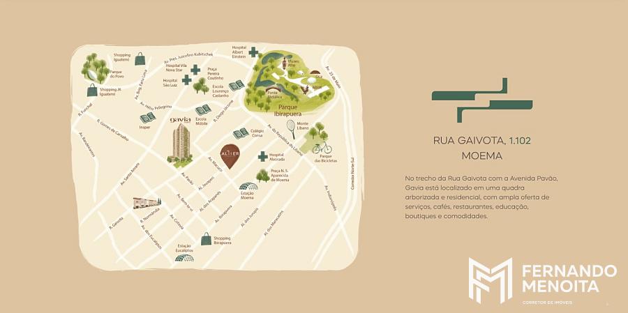 O Gavia Moema é um empreendimento residencial localizado na Rua Gaivota, 1102, no bairro de Moema, uma das regiões mais valorizadas e desejadas de São Paulo.