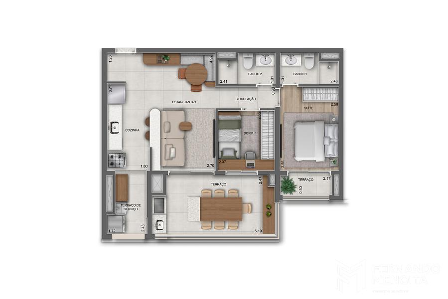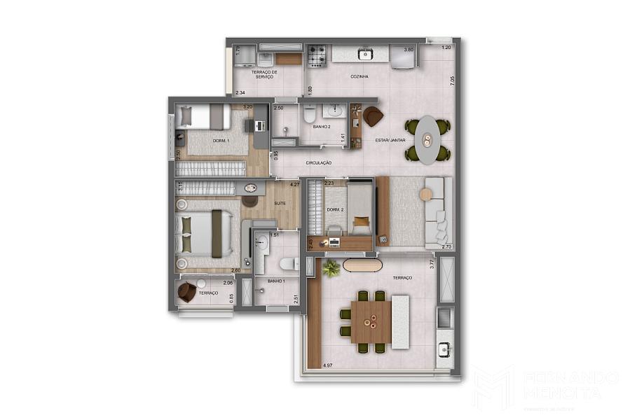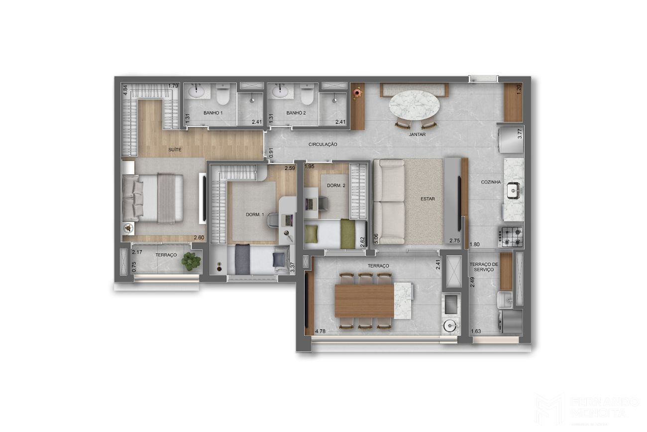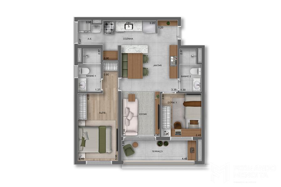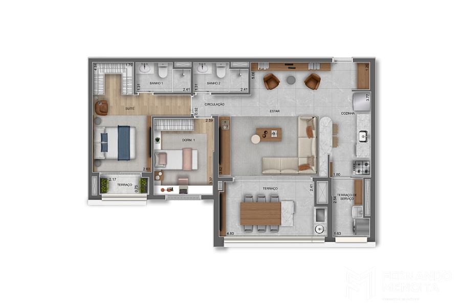 • 1 unidade de 77m² – 2 dorms. (1 suíte)