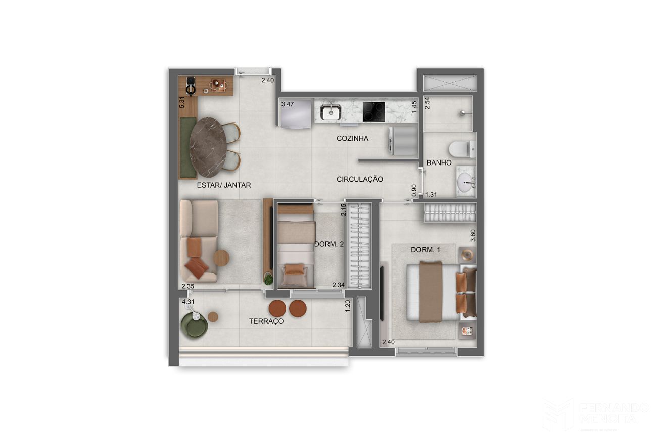 • 8 unidades de 61m² – 2 dorms. (1 suíte)