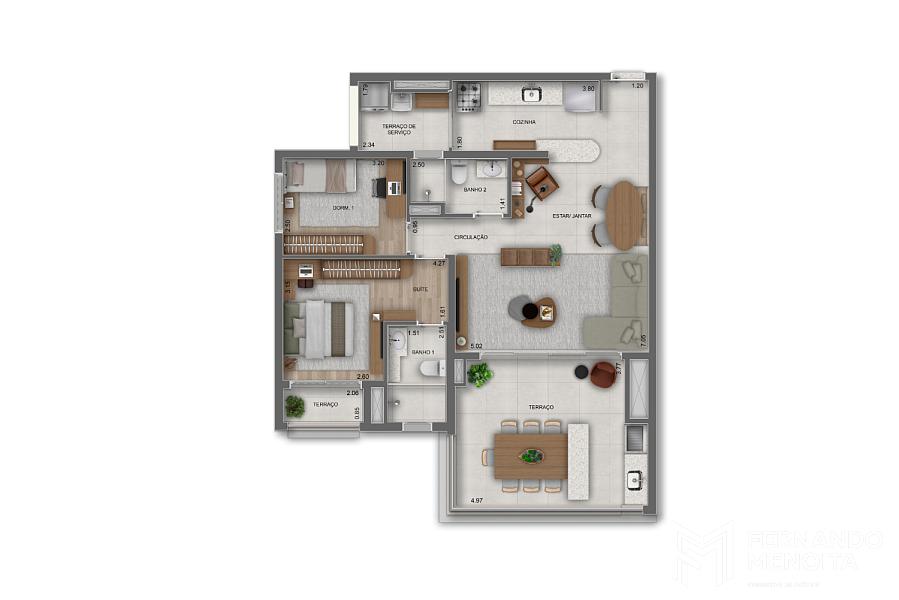 • 1 unidade de 95m² – 3 dorms. (1 suíte)