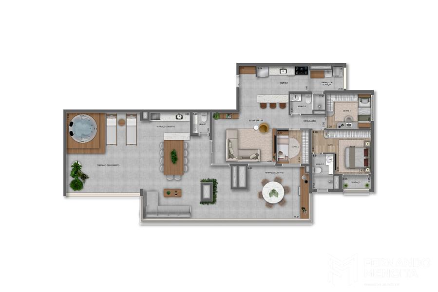• 1 unidade de 242m² – 3 dorms. (1 suíte) – Penthouse