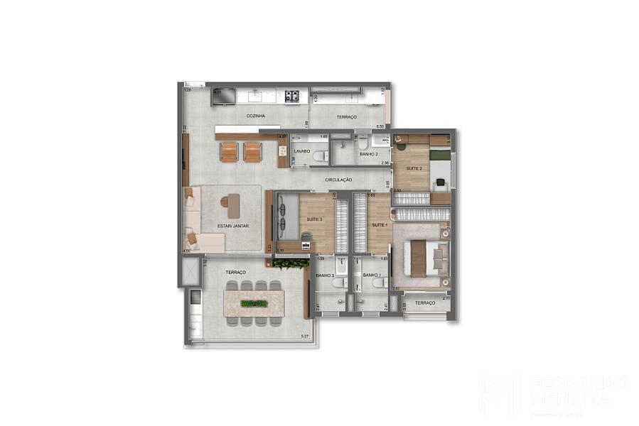• 1 unidade de 98m² – 3 dorms. (1 suíte)
