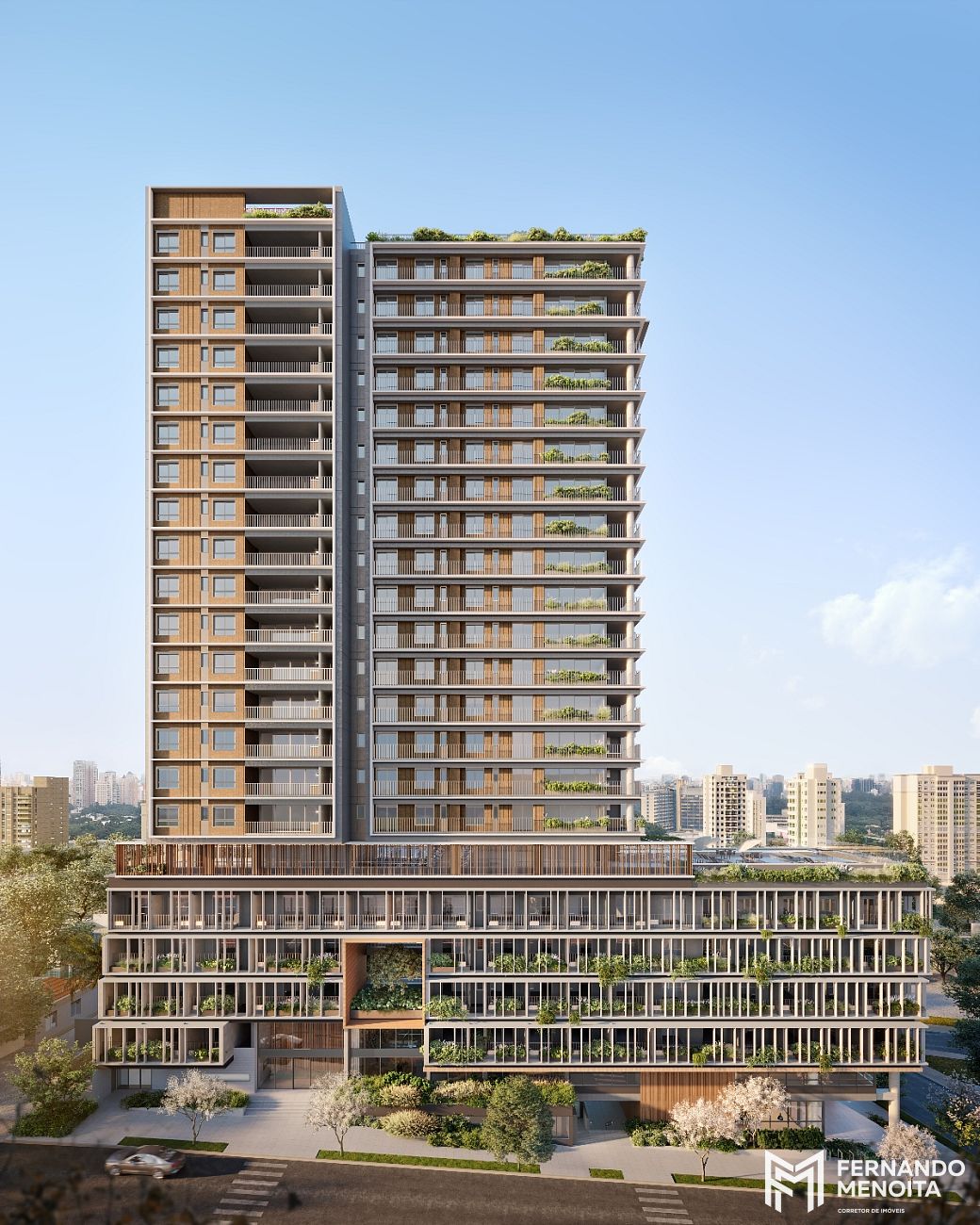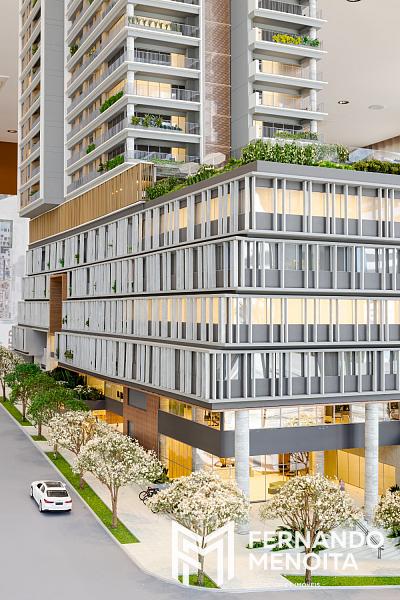 Implantado na Rua Loefgren, na Vila Mariana, o projeto integra uso corporativo e residencial de forma equilibrada, com fachada ativa no térreo e acessos independentes, reforçando a vocação urbana, a segurança e a valorização do ativo.