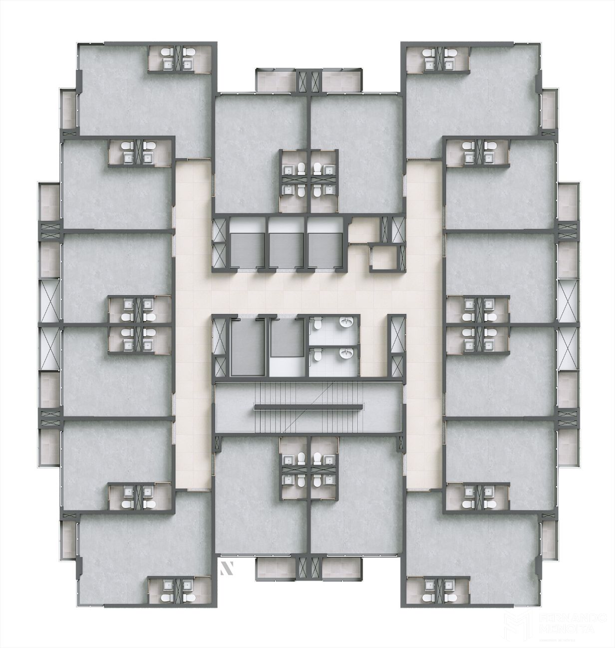 Além das unidades convencionais, o Medplex se diferencia pela presença de áreas corporativas de grande escala, voltadas para operações estruturadas de saúde, como centro de diagnóstico, laboratório e day hospital, consolidando o empreendimento como um verdadeiro hub médico integrado.