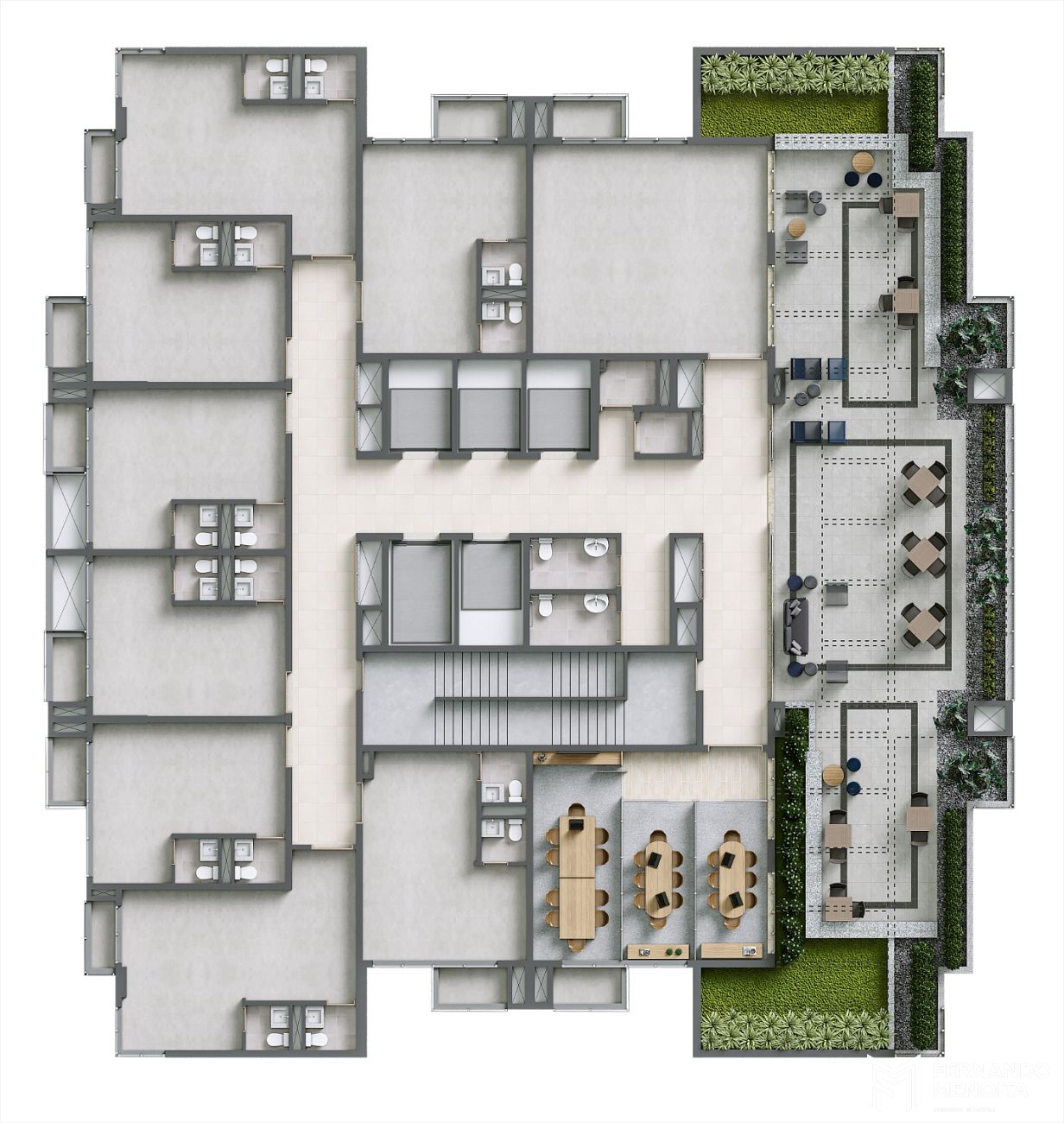 • Térreo: Lobby, recepção, acessos e valet