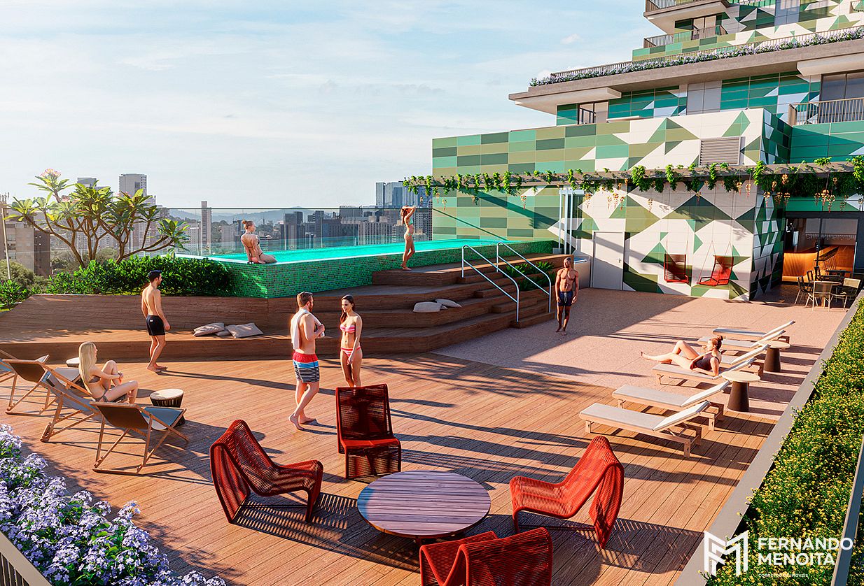 O projeto se destaca pela adoção de soluções construtivas avançadas, como fachada ventilada, que melhora o desempenho térmico, reduz consumo energético e aumenta a durabilidade da edificação, além de sistemas inteligentes como automação predial, gerador para áreas comuns e sistemas essenciais, infraestrutura para CFTV e sensoriamento perimetral.