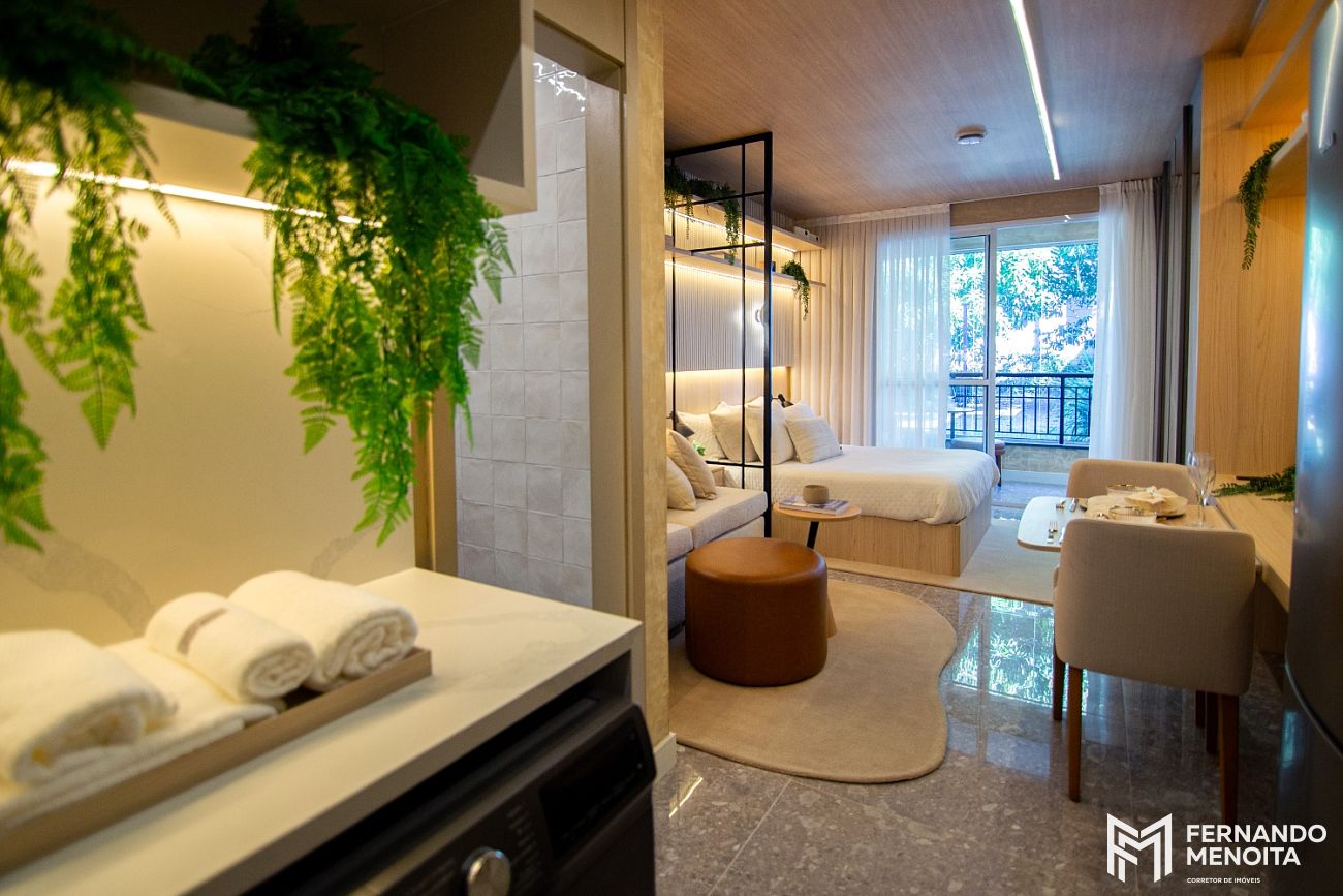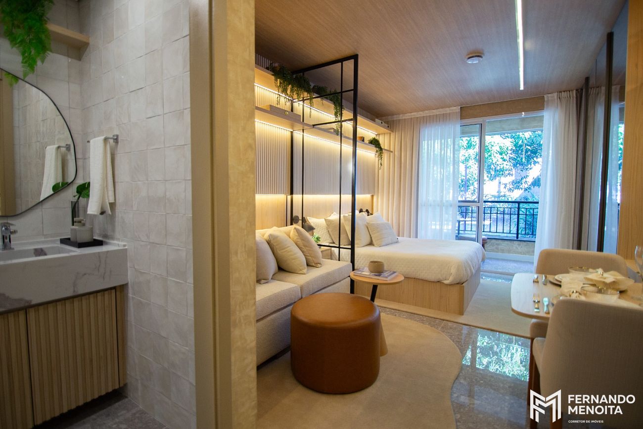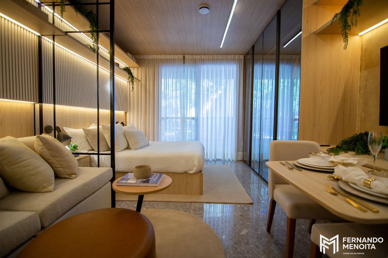 Os residences possuem 33 m² e foram desenvolvidos com plantas inteligentes, ideais tanto para moradia quanto para locação. Um produto alinhado às demandas atuais do mercado, com excelente liquidez e versatilidade.