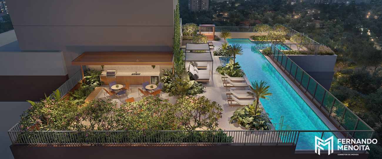 As áreas comuns foram distribuídas de forma inteligente ao longo do edifício, funcionando como extensões do apartamento e integrando lazer, trabalho e convivência em ambientes contemporâneos, como coworking, lounge, fitness completo e rooftop com piscina e spa.