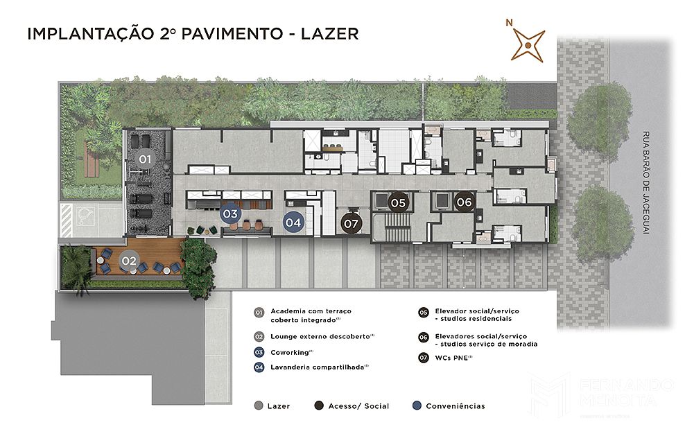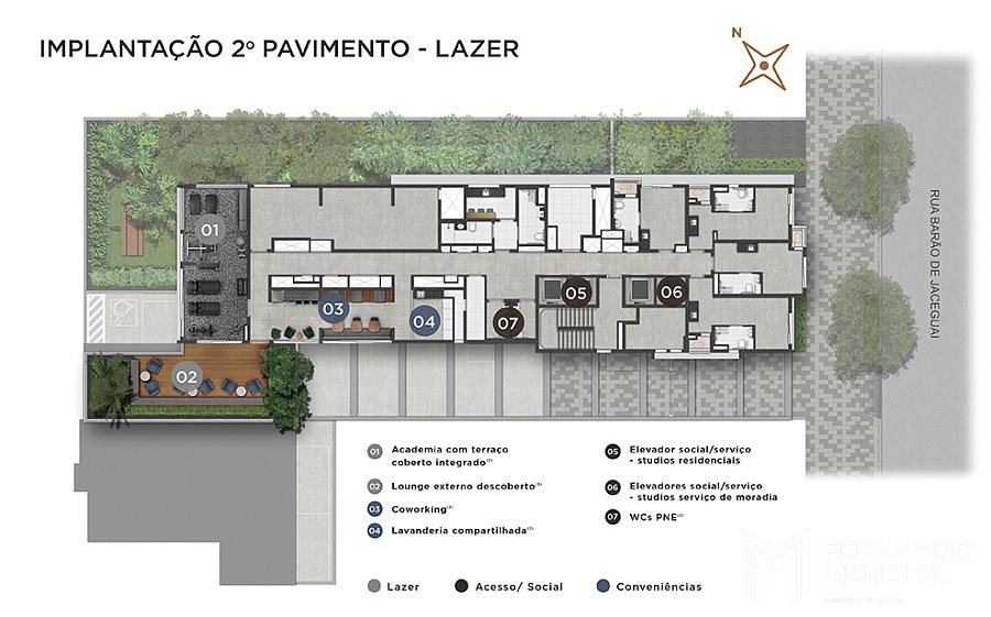 • 2º pavimento: lazer compartilhado R e NR + áreas técnicas e de apoio + 4 unidades Studio NR