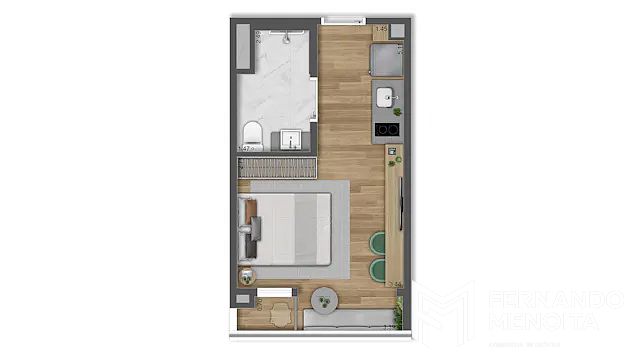 Os Studios a partir de 21m² foram planejados com plantas eficientes, integração total dos ambientes e excelente aproveitamento de espaço, proporcionando conforto sem excessos. O empreendimento oferece unidades nas modalidades Residencial e com Serviços (conforme convenção condominial), ampliando as possibilidades tanto para moradia quanto para investimento.