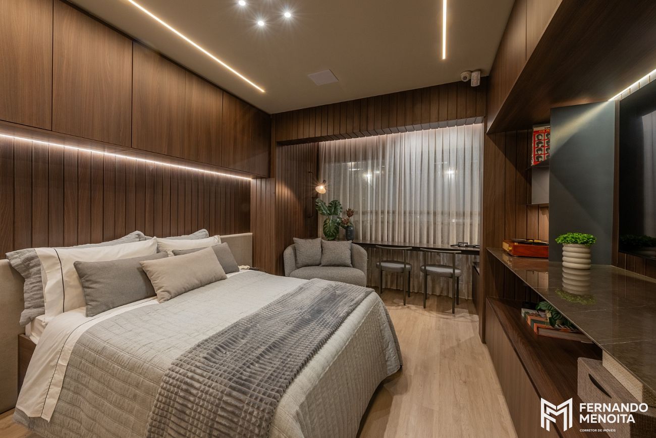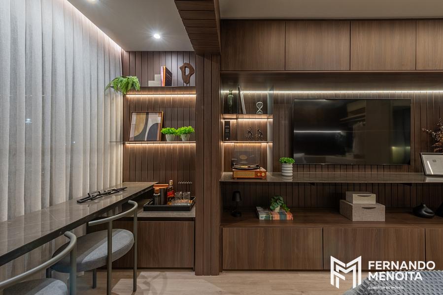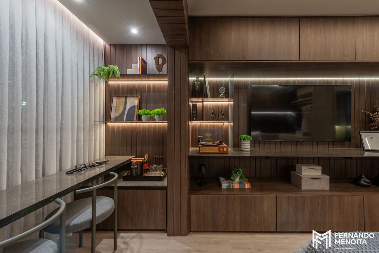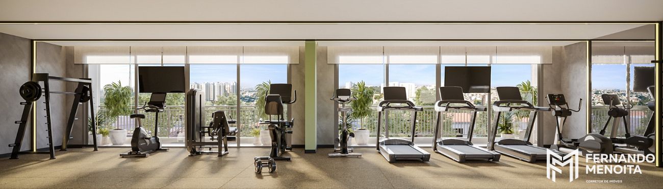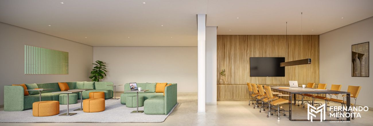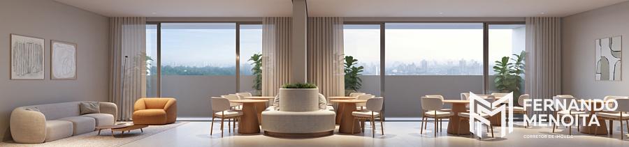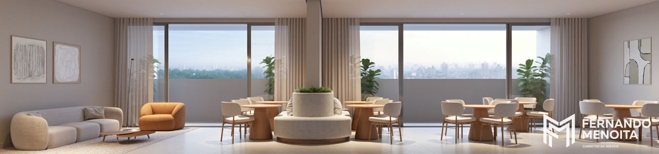O projeto apresenta infraestrutura completa desde o térreo, com lobby com pé-direito duplo, portaria com vidros e portas blindadas, espaço delivery, lavanderia compartilhada e bicicletário coletivo.