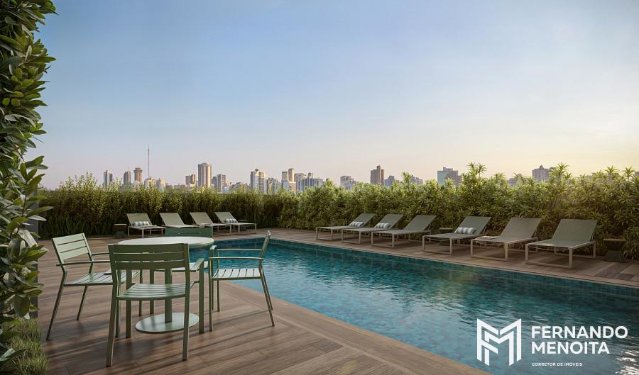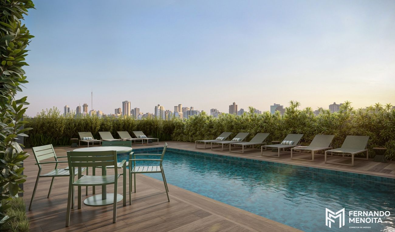 No 5º pavimento, o lazer elevado reúne ambientes entregues equipados e decorados, incluindo fitness (120 m²), salão de festas (122 m²), coworking, sala de reunião, churrasqueira com forno para pizza, piscina adulto, solarium e ducha.
