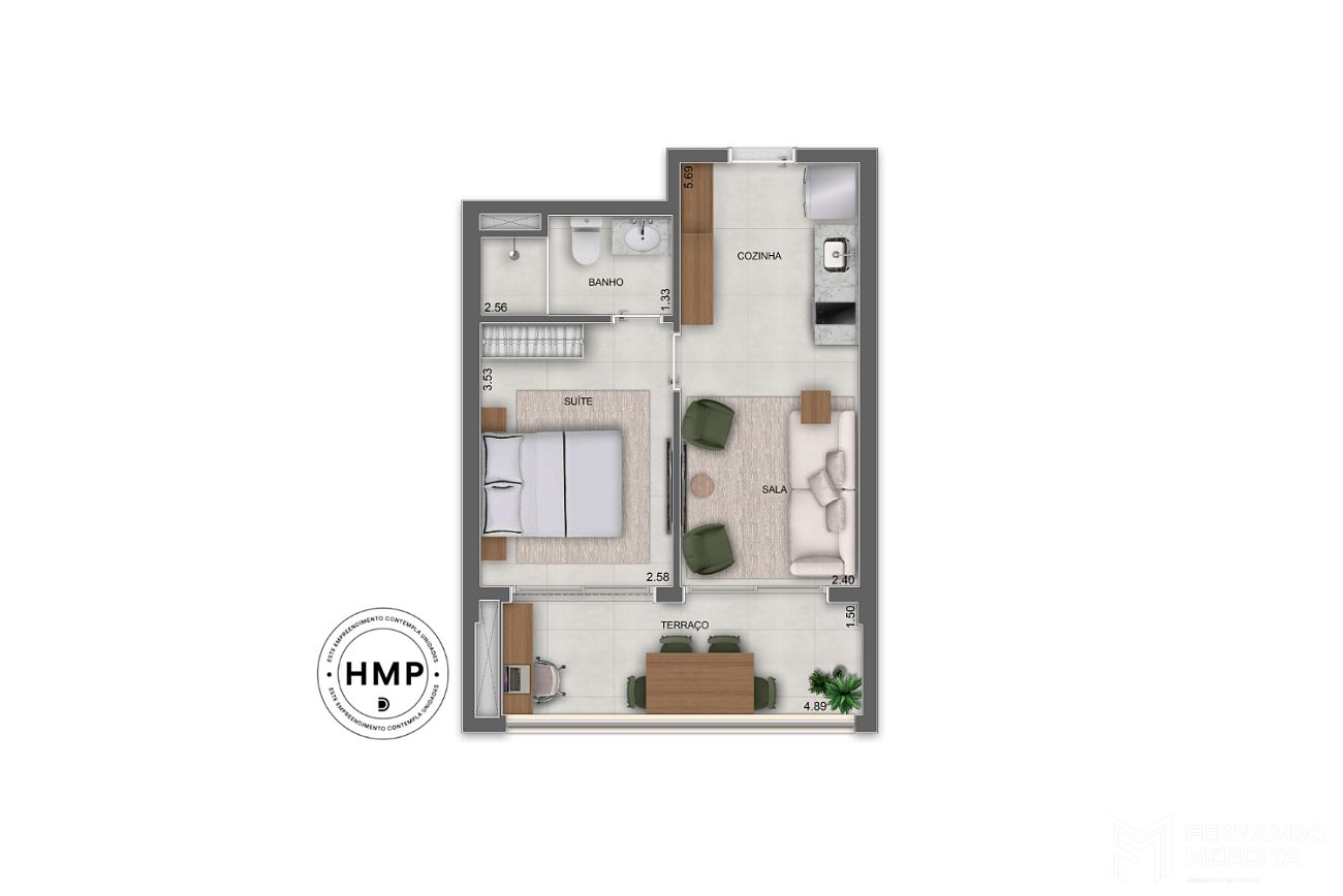 • 4 unidades – 39 m² (1 suíte)