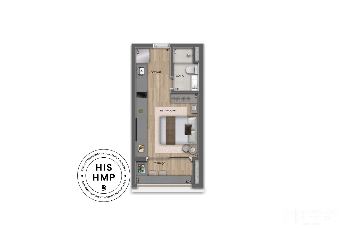 Com plantas inteligentes e funcionais de 26 m² a 39 m², o empreendimento oferece studios e unidades de 1 suíte, atendendo diferentes perfis de moradia e investimento. A distribuição contempla unidades HIS, HMP e Residenciais, totalizando uma composição equilibrada entre moradia acessível e padrão contemporâneo urbano.