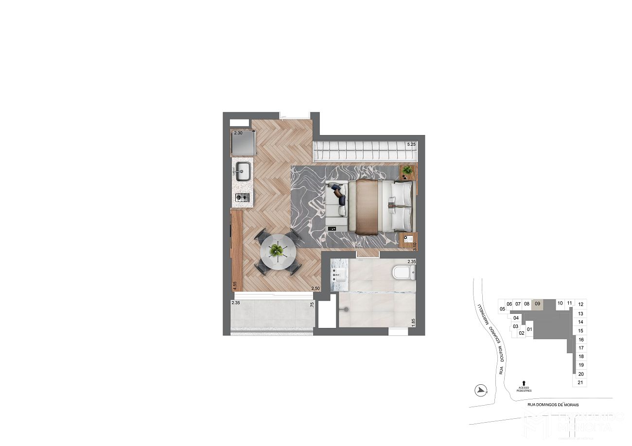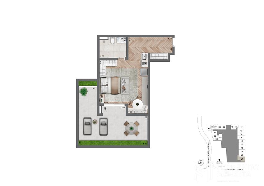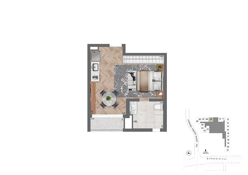 • Studio residencial – 25,50 m² (final 7 – 2º pavimento)
