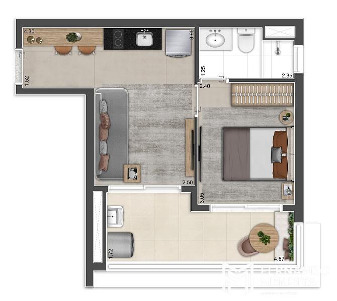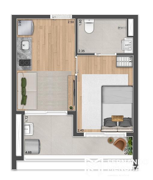 • 1 Dormitório: 32,65m² a 36,20m²