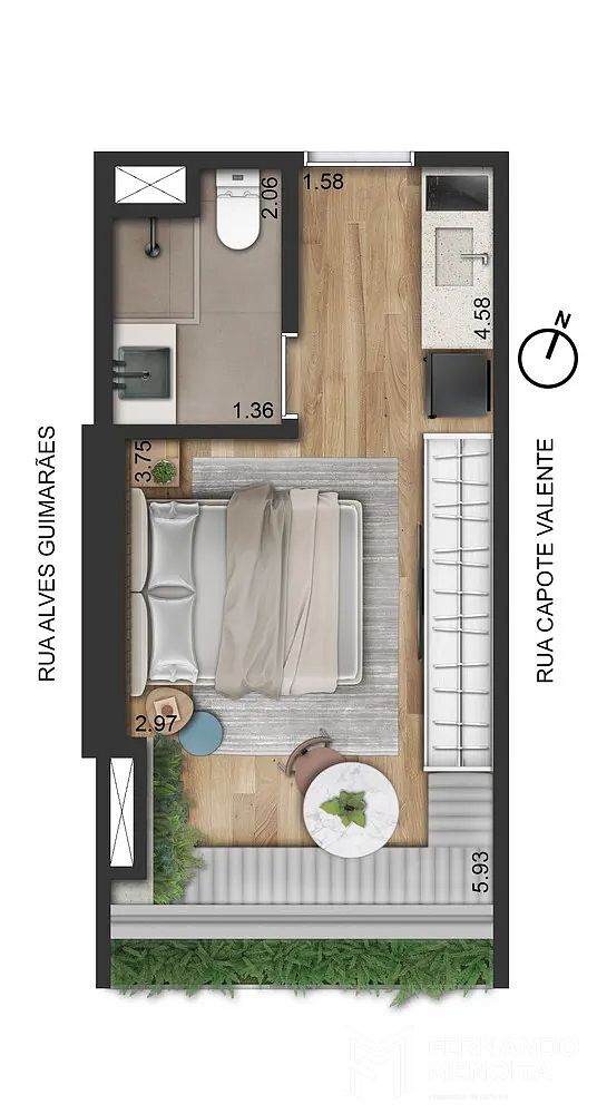 • Studios Residenciais (R): 92 unidades | 20 m² a 29,5 m² | sem vagas
