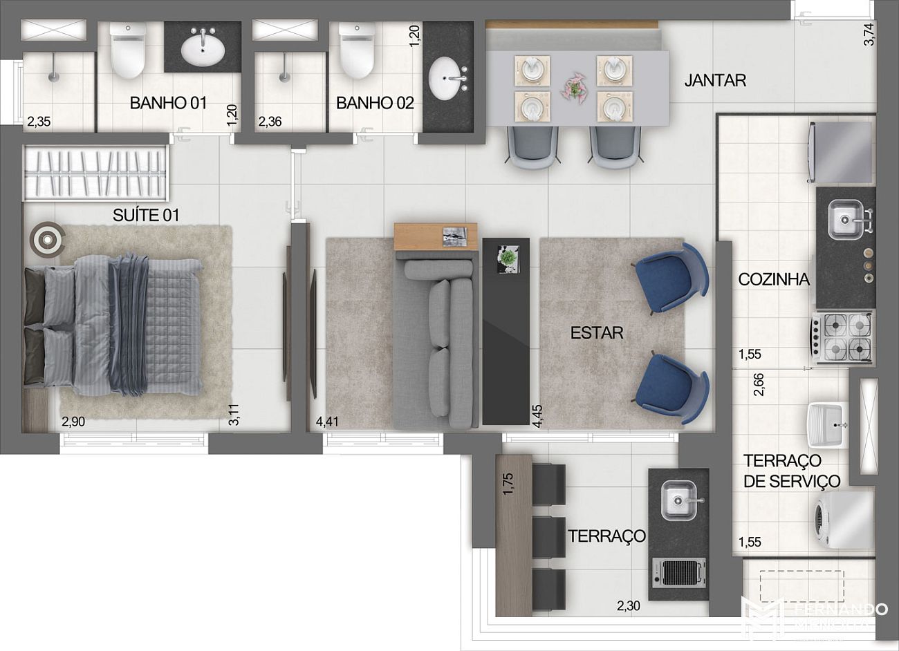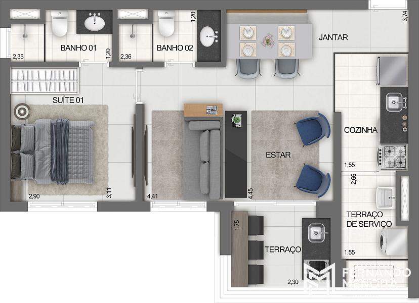 • Studios maiores: até 48,08 m²
