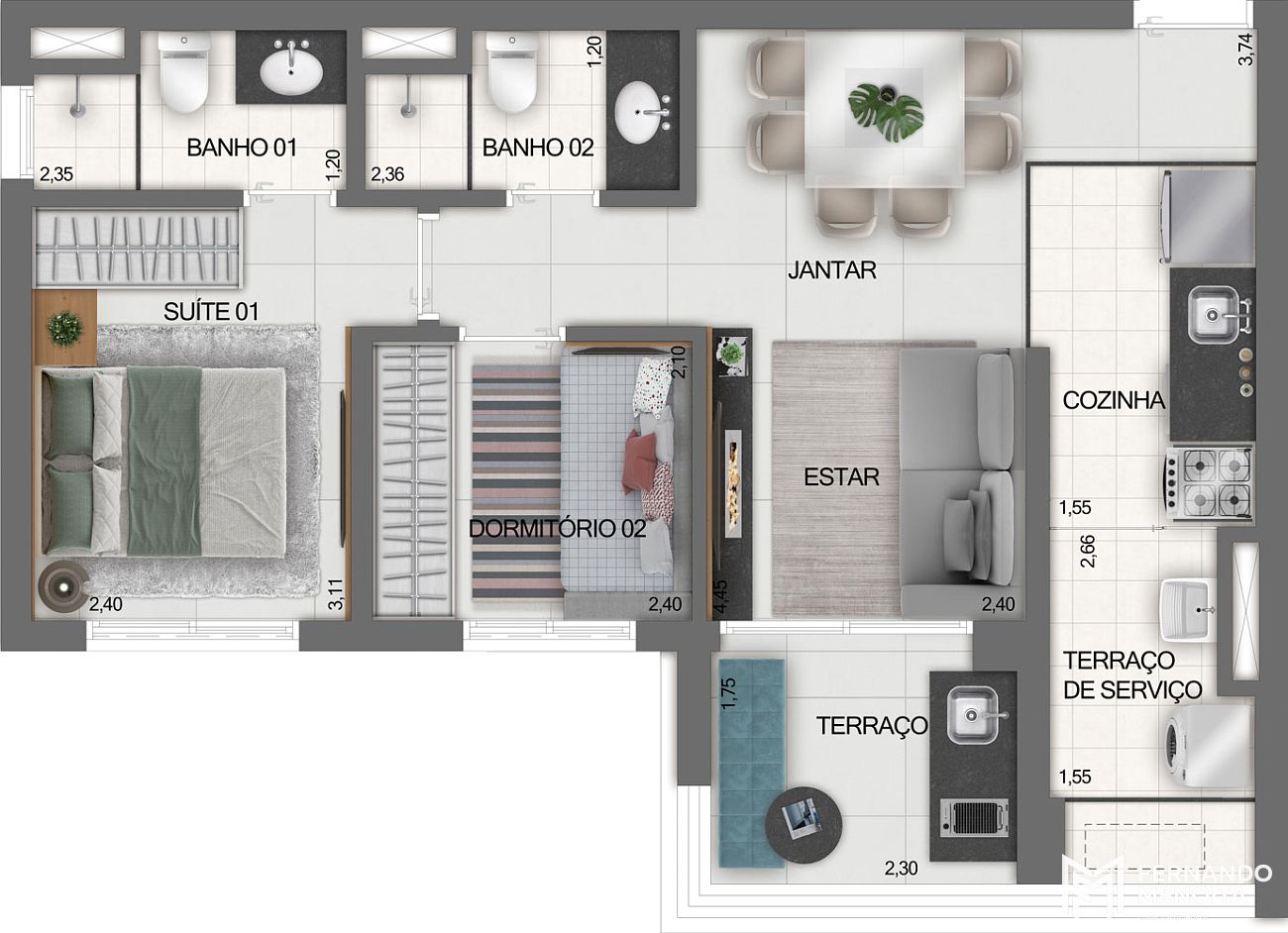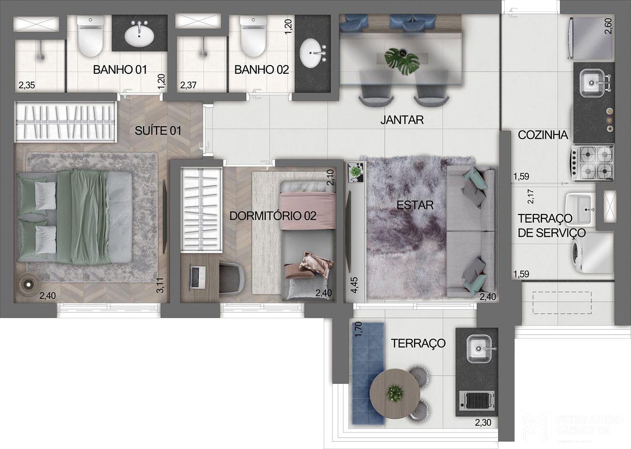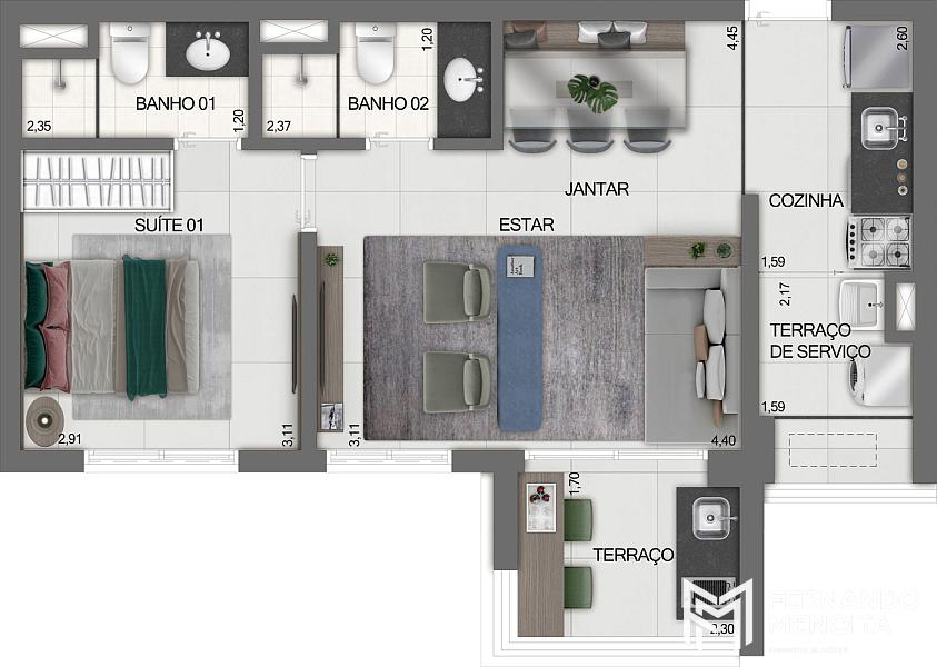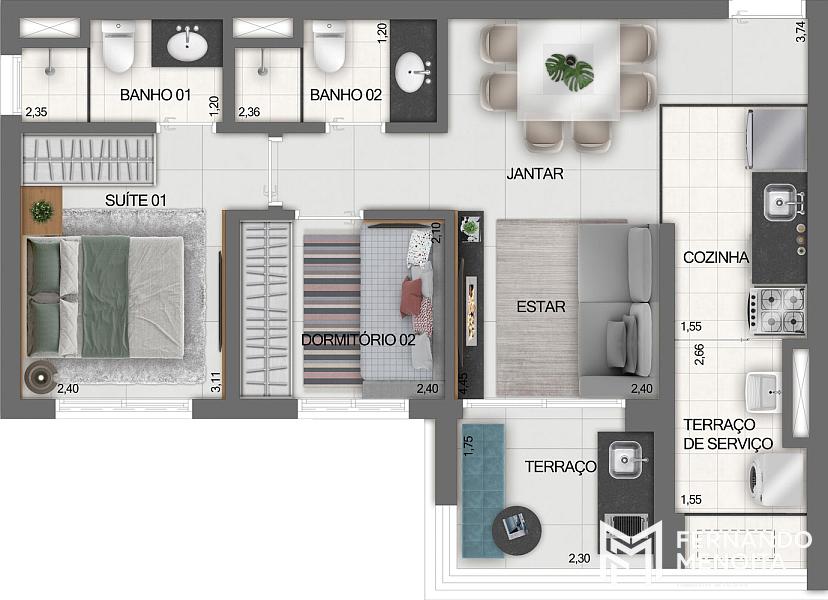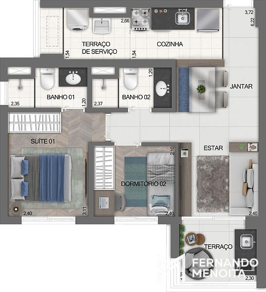 • Apartamentos de 2 dormitórios: 102 unidades